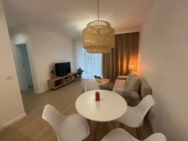 Mieszkanie doskonale rozplanowane i zaaranżowane w ponadczasowym stylu łączącym elegancję i funkcjonalność. Stan idealny. Wszystko nowe. Jeszcze nikt nie mieszkał. Lokal w pełni wyposażony. Sprzedaż bez łóżka, szafek nocnych w sypialni i kanapy z salonu. Reszta sprzętów pozostaje w cenie.