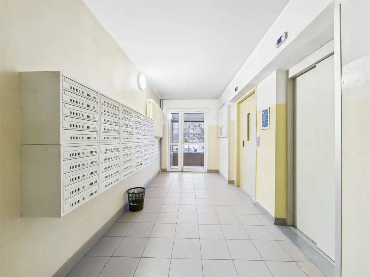 Zadbany budynek mieszkalny z uporządkowanymi częściami wspólnymi, położony w spokojnym otoczeniu zieleni.