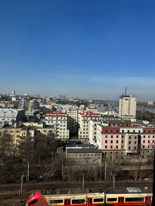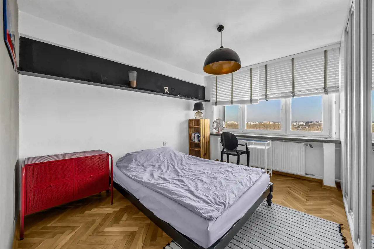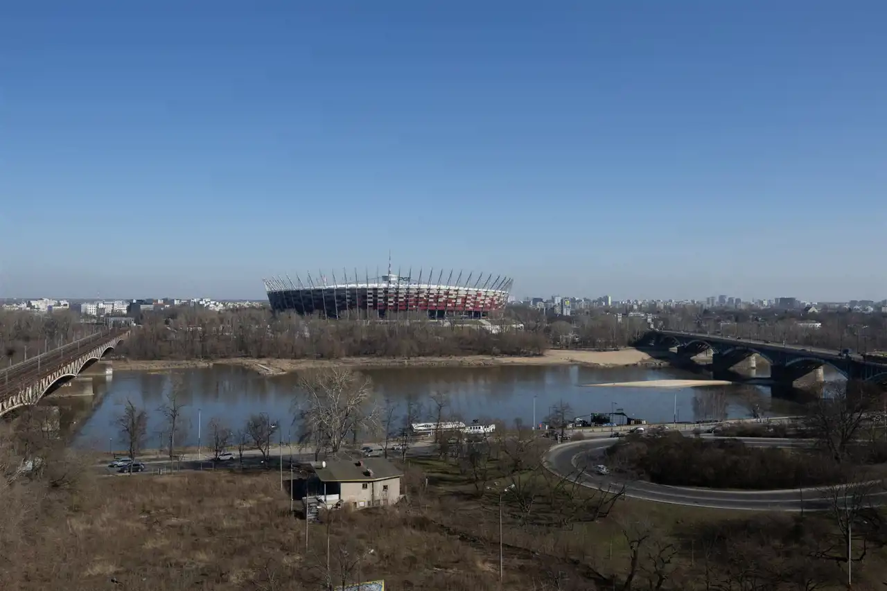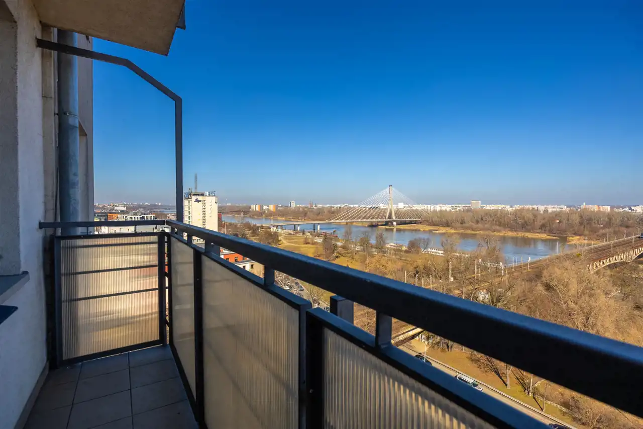 Z kolei okna w salonie i sypialni wychodzą na stronę wschodnią – z widokiem na Wisłę oraz Stadion Narodowy. Z mieszkania rozciąga się szeroka panorama prawej części Warszawy.