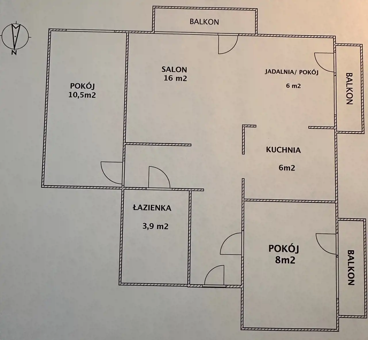 - trzy zabudowane balkony o łącznej powierzchni ok. 14 m² – wyjście z trzech pokoi