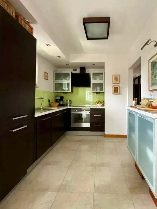 - półotwarta kuchnia w zabudowie, wyposażona w sprzęt AGD