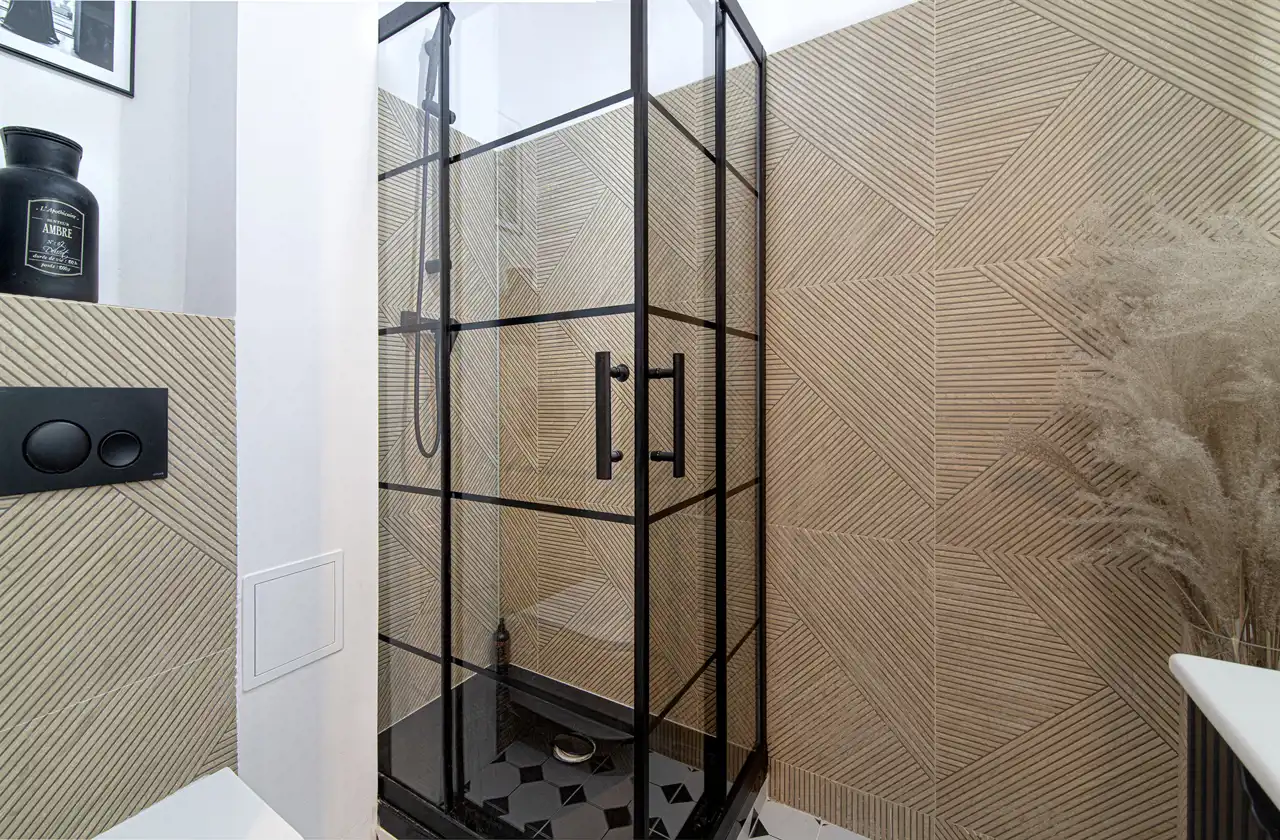 Łazienka: zapewnia funkcjonalność i prywatność. Wnętrze charakteryzuje się harmonią i spójnością, łącząc klasyczne i nowoczesne rozwiązania.