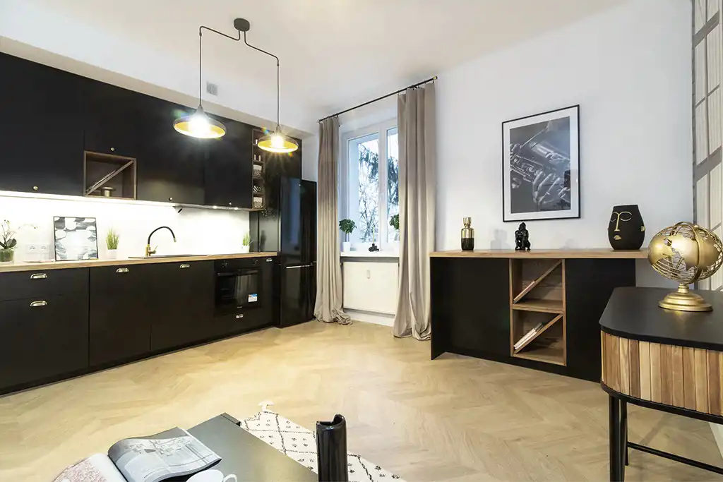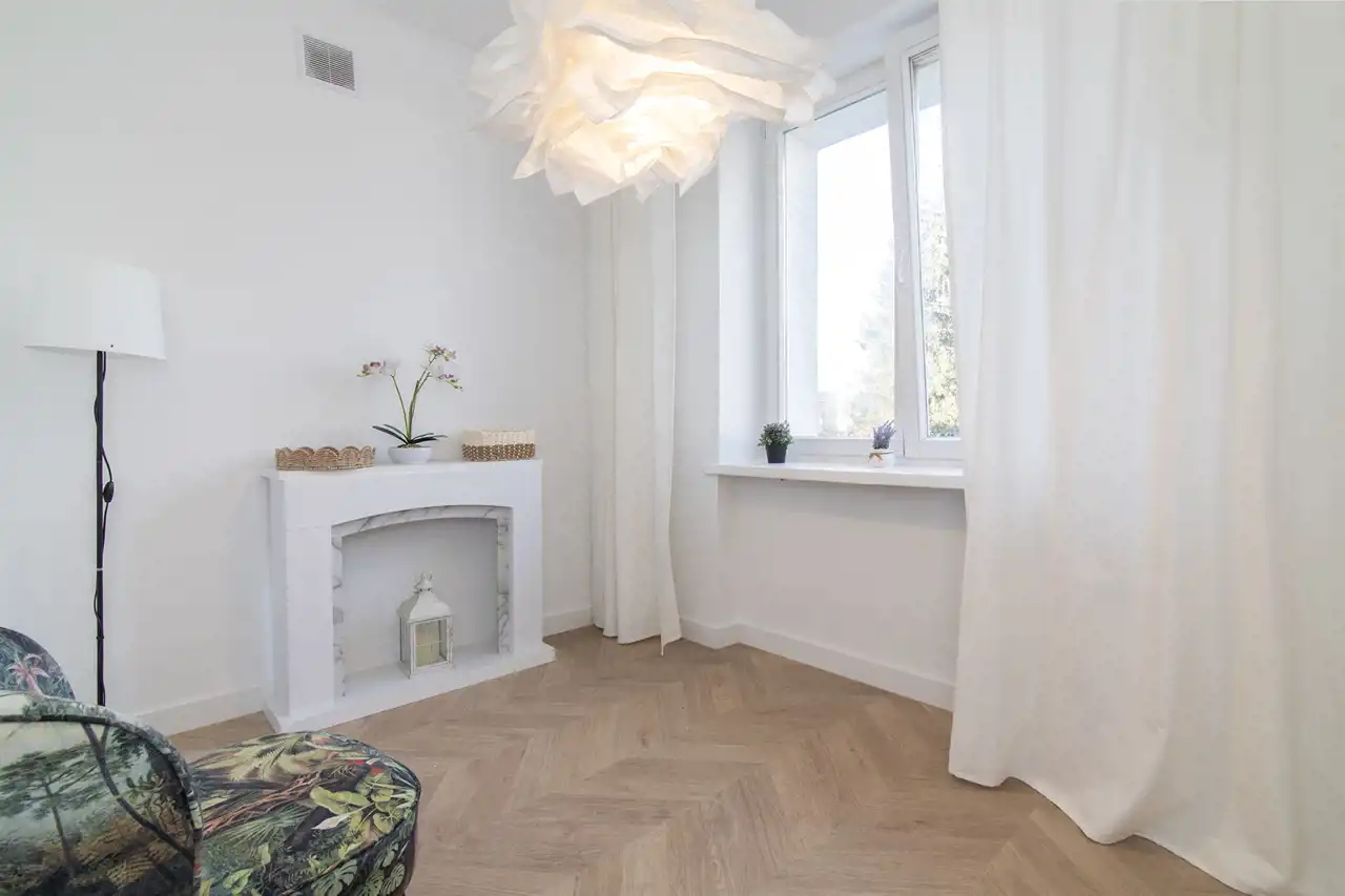 "M" przeszło gruntowny remont (łącznie z wymianą elektryki), a każdy szczegół został starannie dopracowany, aby zapewnić przestrzeń pełną światła i elegancji, łącząc komfort z funkcjonalnością.