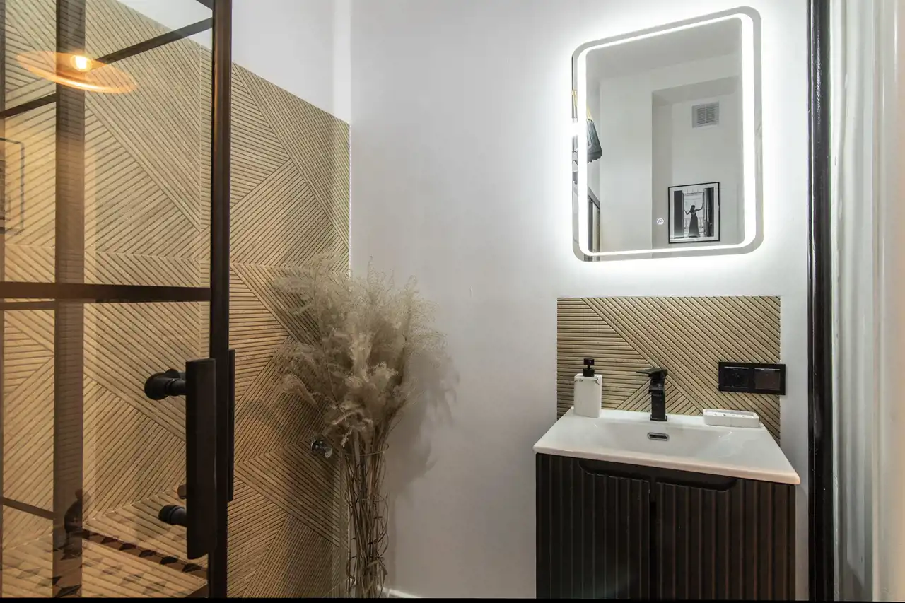 Łazienka: zapewnia funkcjonalność i prywatność. Wnętrze charakteryzuje się harmonią i spójnością, łącząc klasyczne i nowoczesne rozwiązania.
