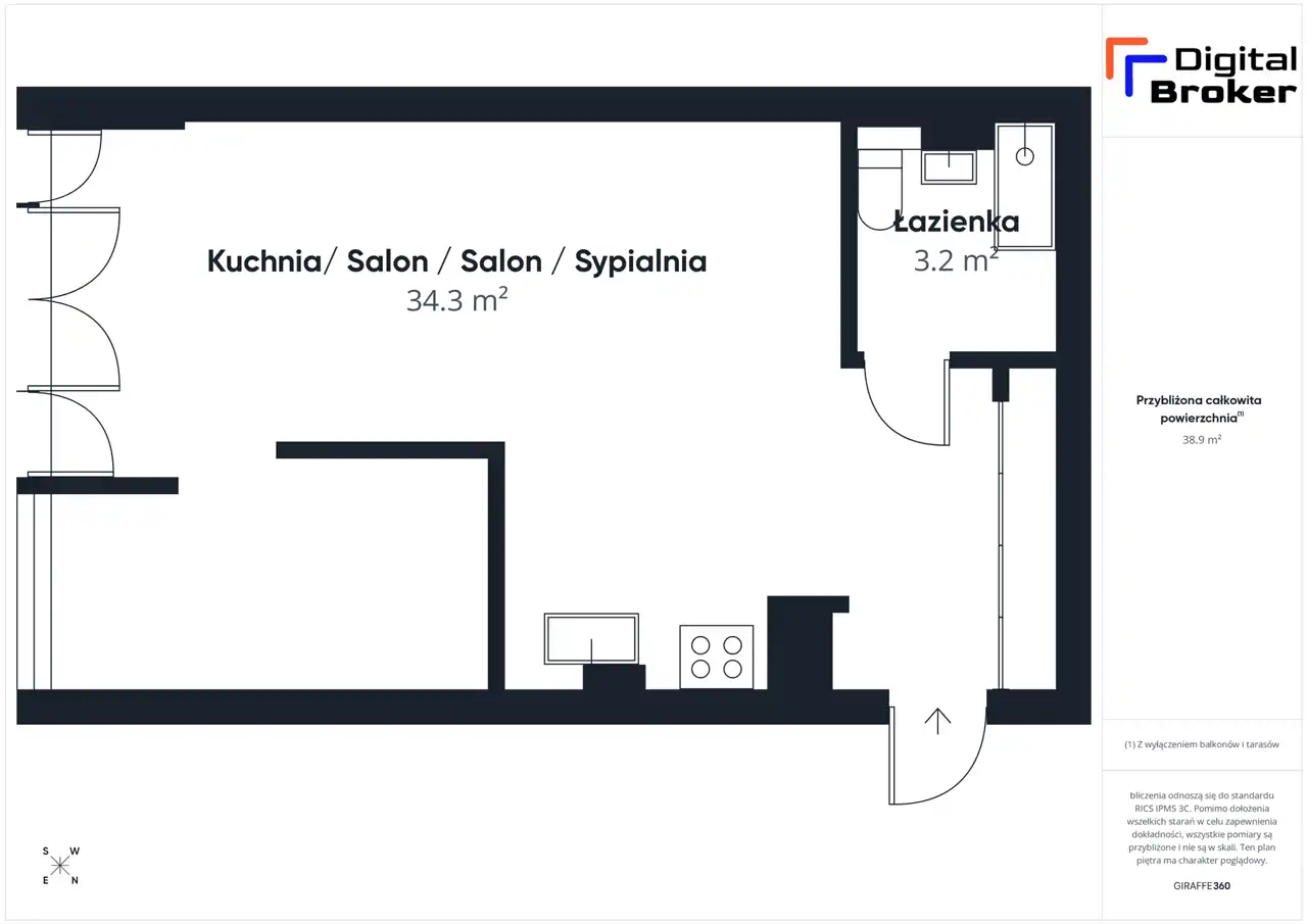- Charakterystyka mieszkania 37.51 m2, 2 pokoje