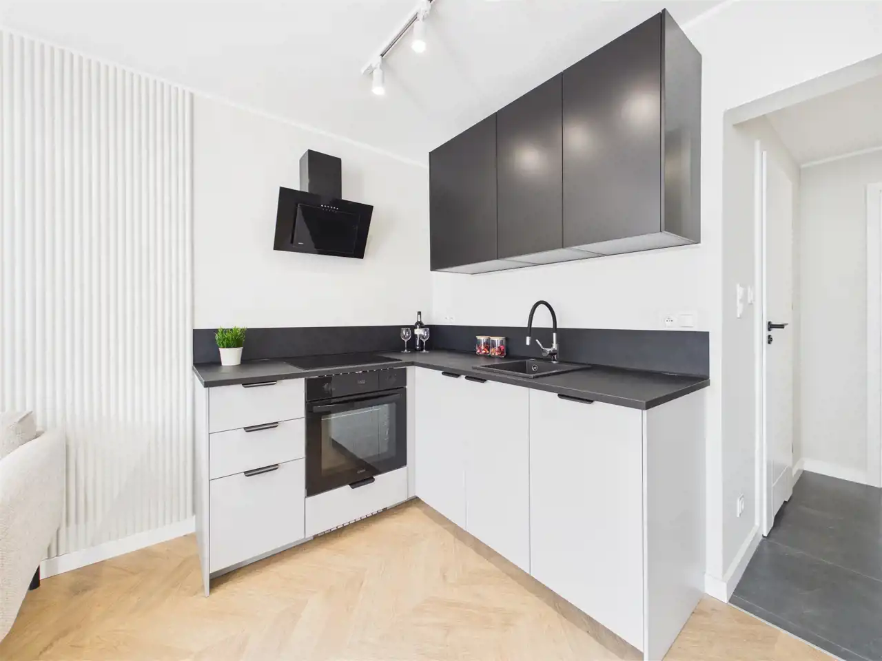 Na powierzchni 42 m² zaprojektowano niezwykle funkcjonalny i nowoczesny układ: