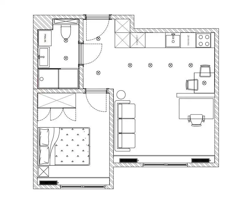 Mieszkanie 40m2, mieszczące się na 3. piętrze budynku, składa się z salonu z aneksem kuchennym, sypialni, łazienki oraz balkonu.