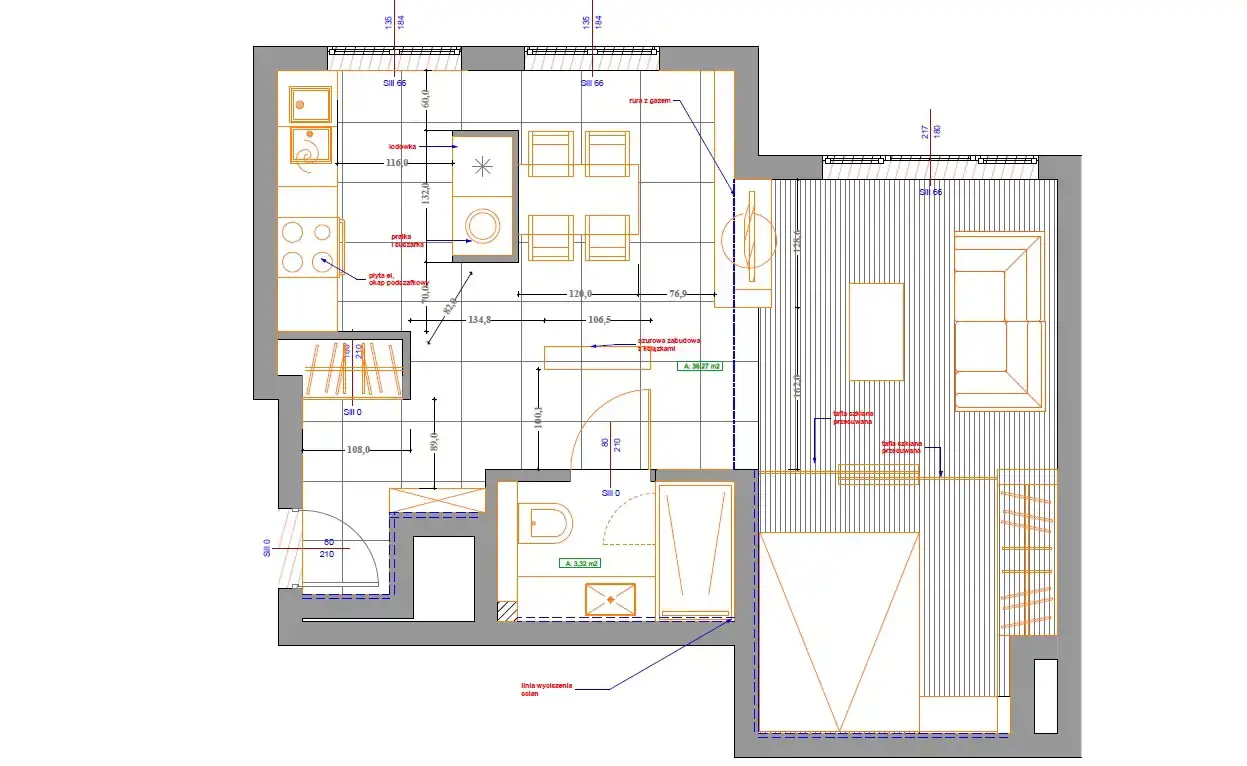 - Charakterystyka mieszkania 38.16 m2, 2 pokoje