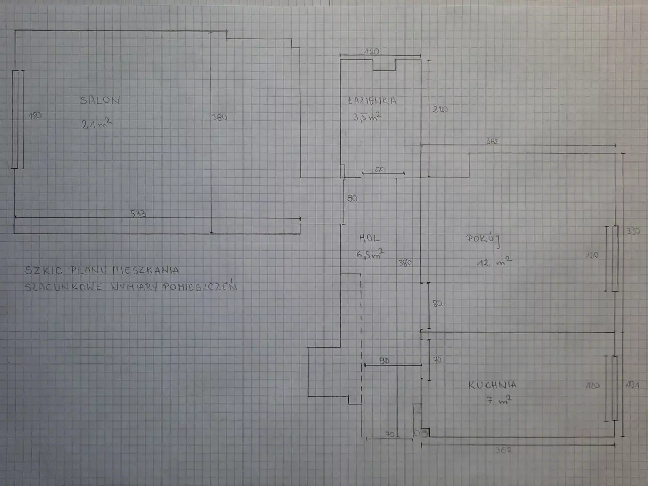 Przybliżone wymiary poszczególnych pomieszczeń to: