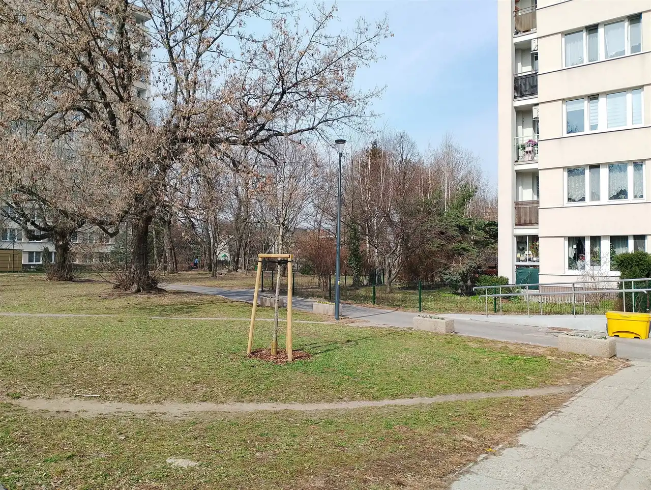 Budynek otoczony jest starodrzewem i dużymi przestrzeniami między blokami, co gwarantuje ciszę i prywatność.