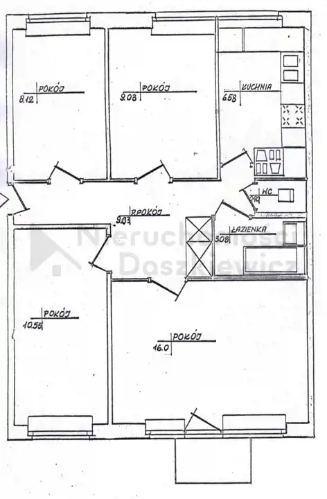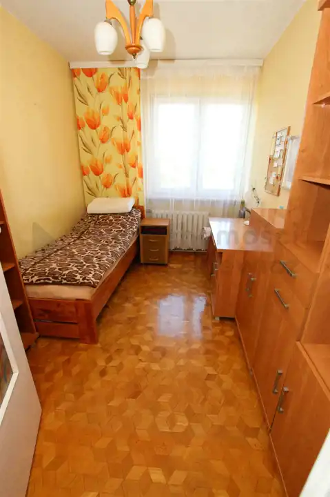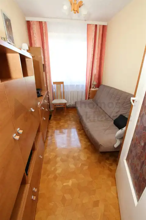 Pokoje o pow. 16m, 10.55m, 9.03m i 8.12m – we wszystkich na podłodze ładna mozaika drewniana, z największego z pokoi wyjście na balkon 3m.