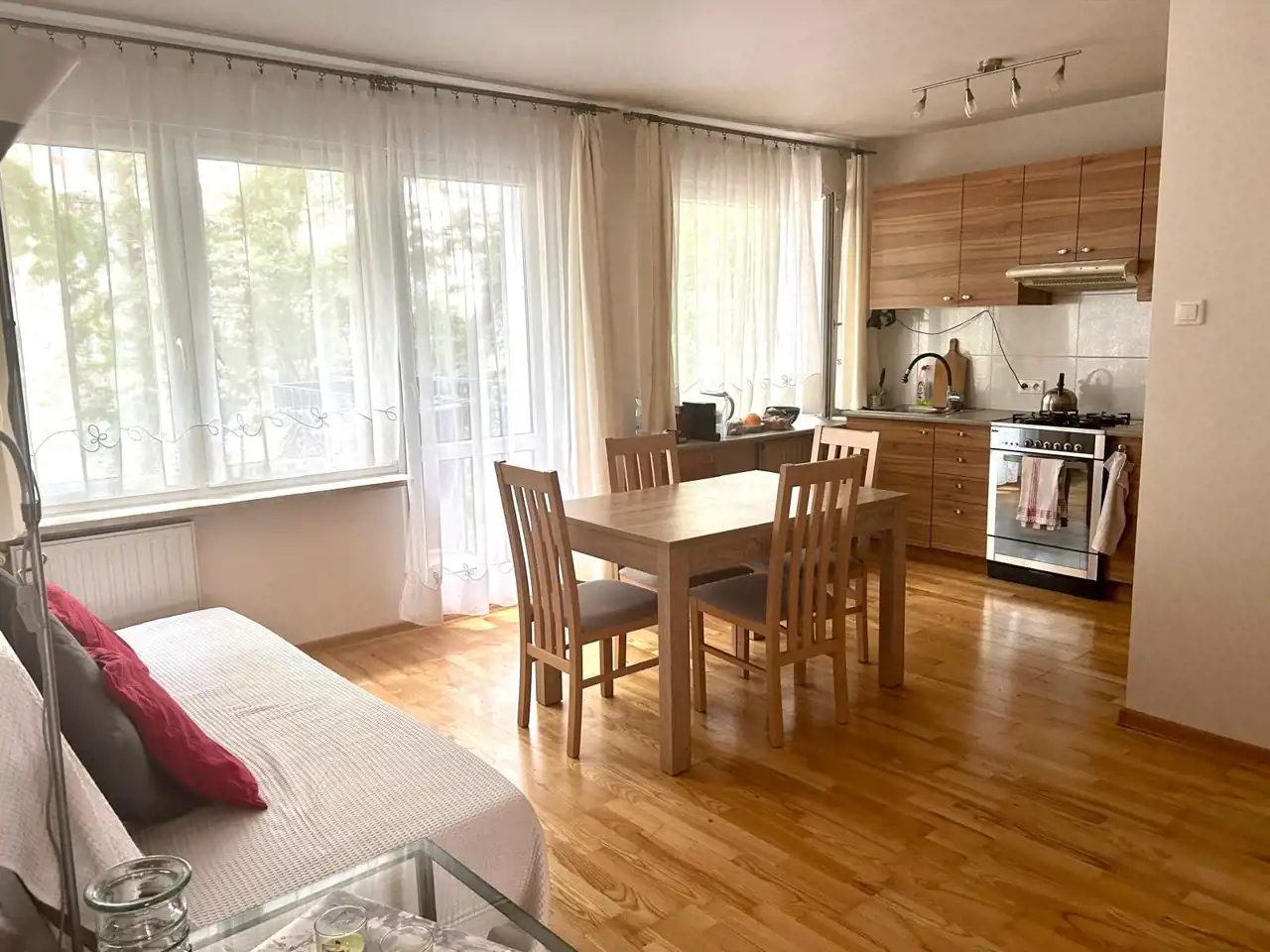 Doskonałe 3 pokojowe mieszkanie niedaleko Galerii Mokotów. Mieszkanie na 1 pierwszym piętrze w budynku 4 piętrowym- dwustronne, położone w drugiej linii zabudowy, ciche otoczone zielenią, Stan mieszkania dobry gotowe do zamieszkania lub wynajmu, Na podłodze deska barlinecka, Niski czynsz (720 zł)