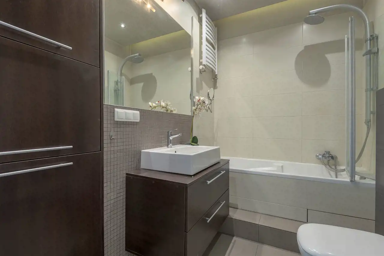 Sypialnia (10,7 m²) jest wyjątkowo ustawna - z łatwością zmieści się w niej duże łóżko oraz szafa. Łazienka (5,4 m²) została zaprojektowana z myślą o komforcie - znajduje się w niej wanna, co czyni ją idealnym miejscem na relaks po długim dniu.