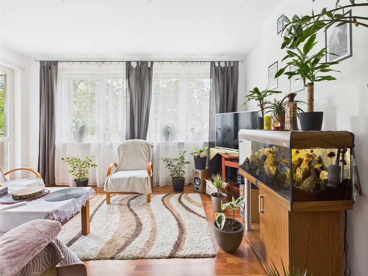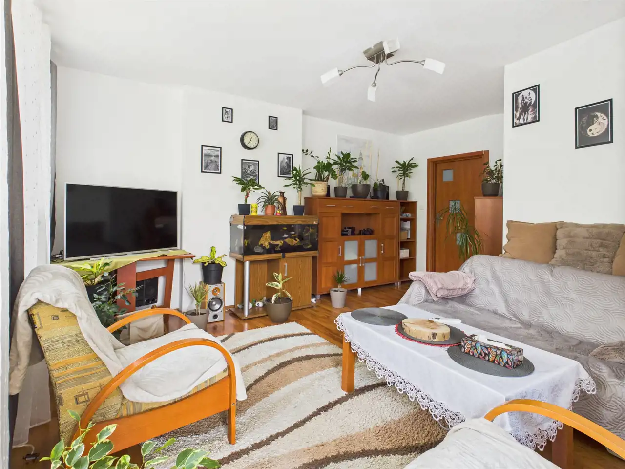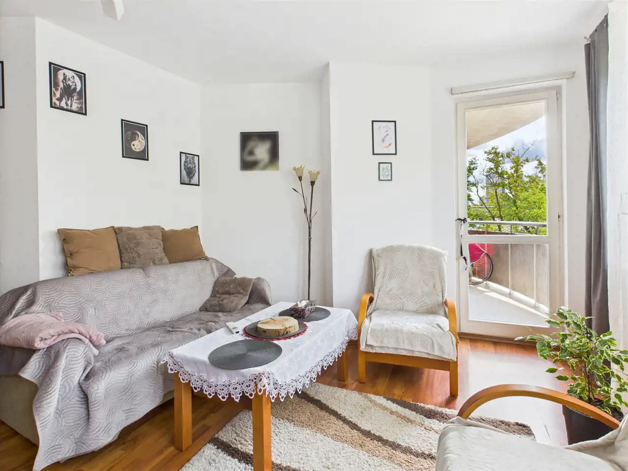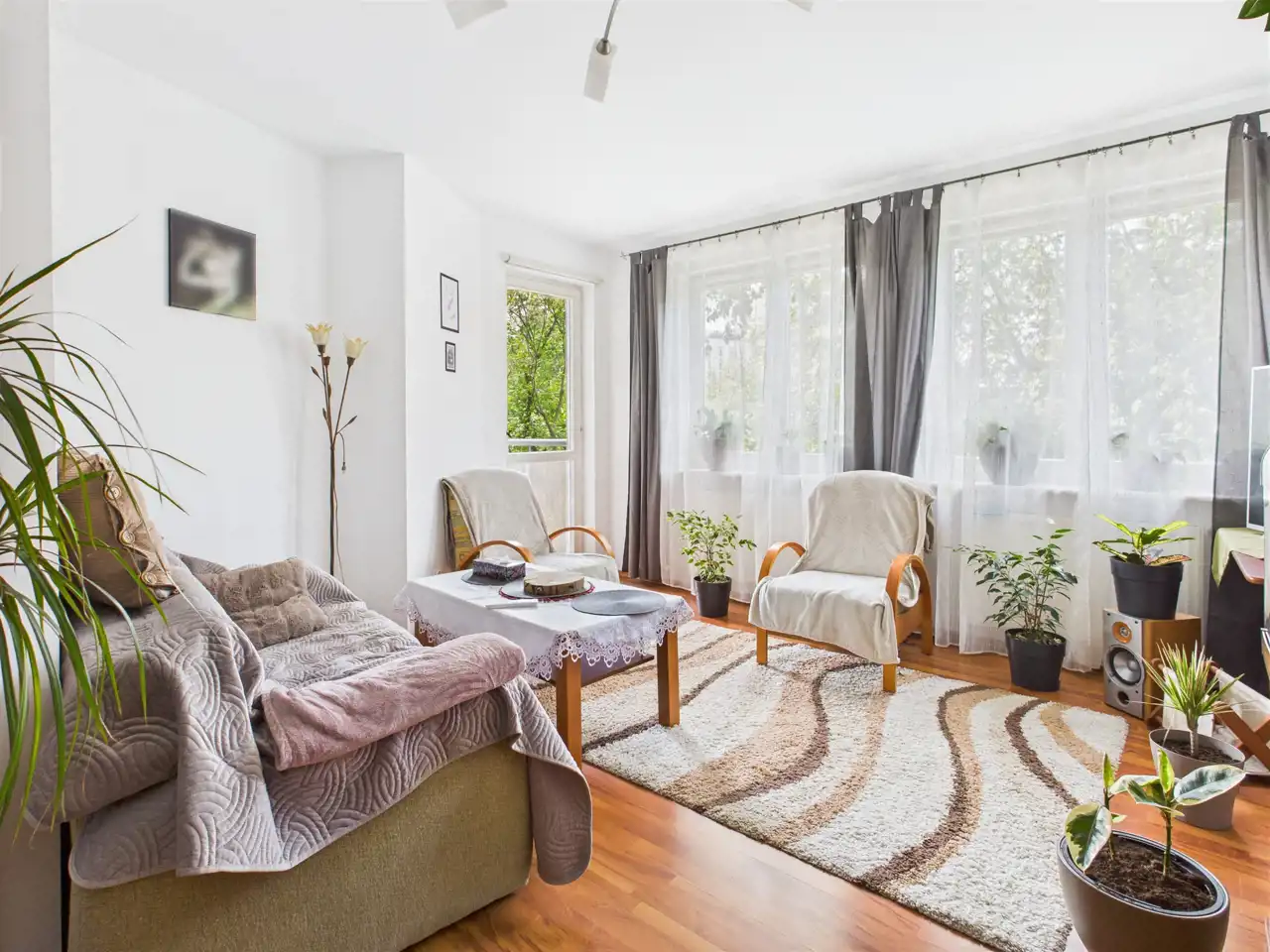 salon z wyjściem na balkon,