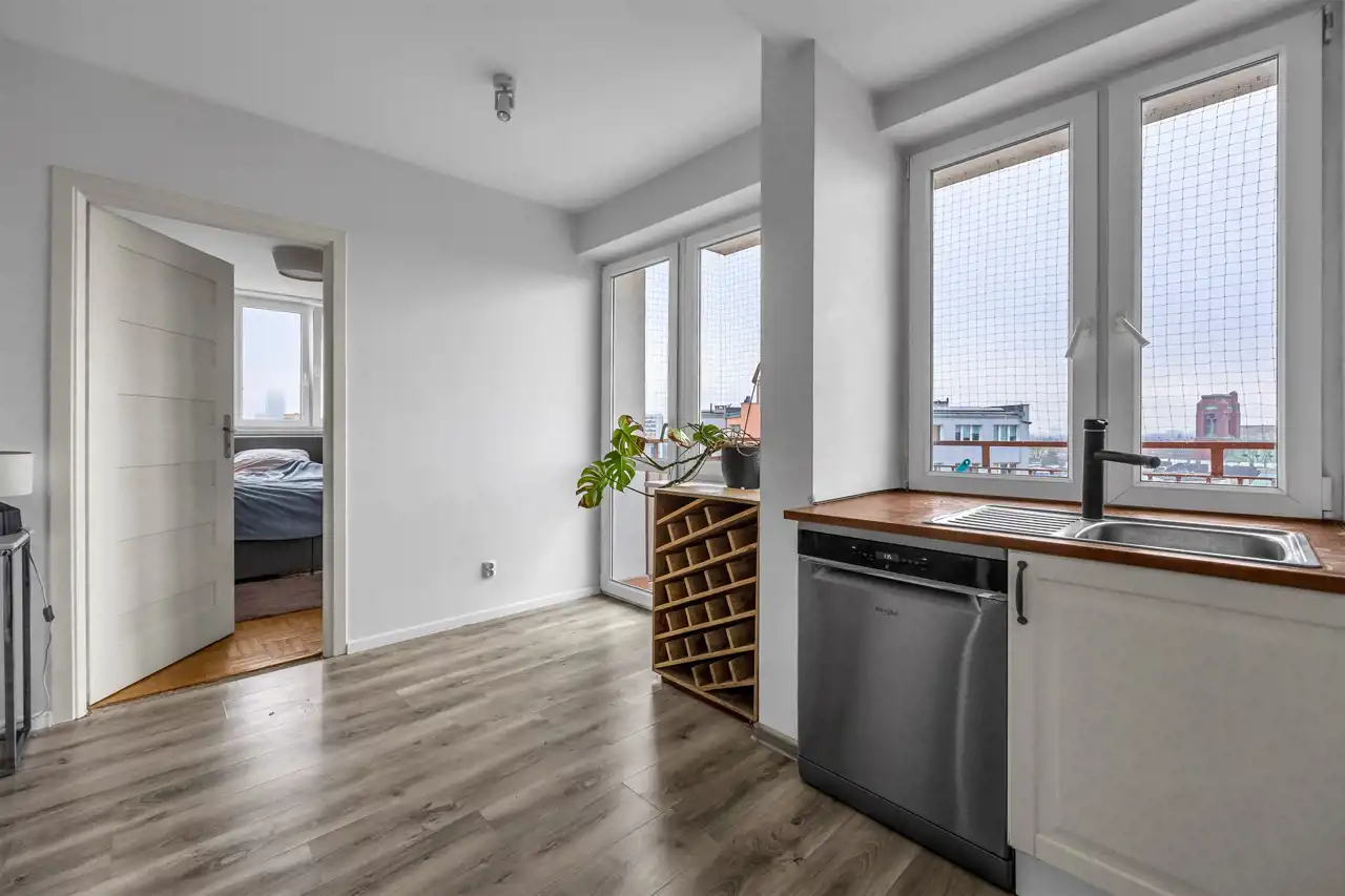 Mieszkanie po generalnym remoncie. Wymienione wszystkie instalacje, gładzie gipsowe na ścianach. Super układ na niedużym metrażu. Salon z dużym oknem i balkonem oraz w pełni wyposażonym aneksem kuchennym (płyta indukcyjna, piekarnik, zmywarka, lodówko zamrażarka), sypialnia, duży pokój z kanapą i tv.