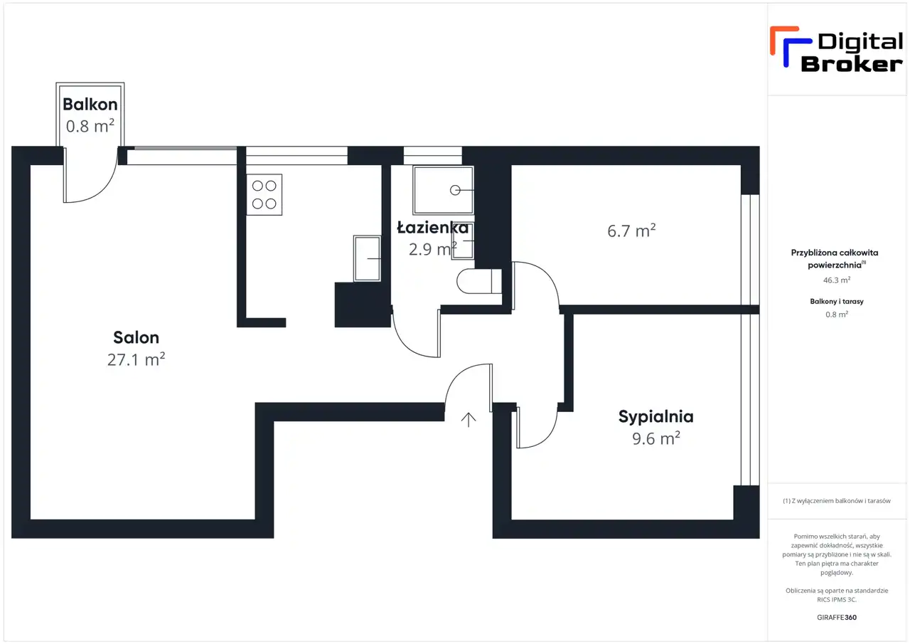 - Charakterystyka mieszkania 47.14 m2, 3 pokoje