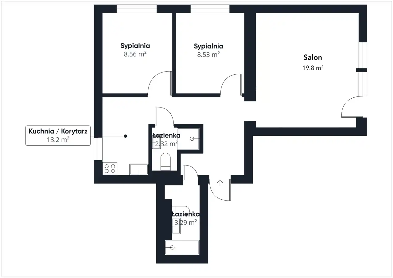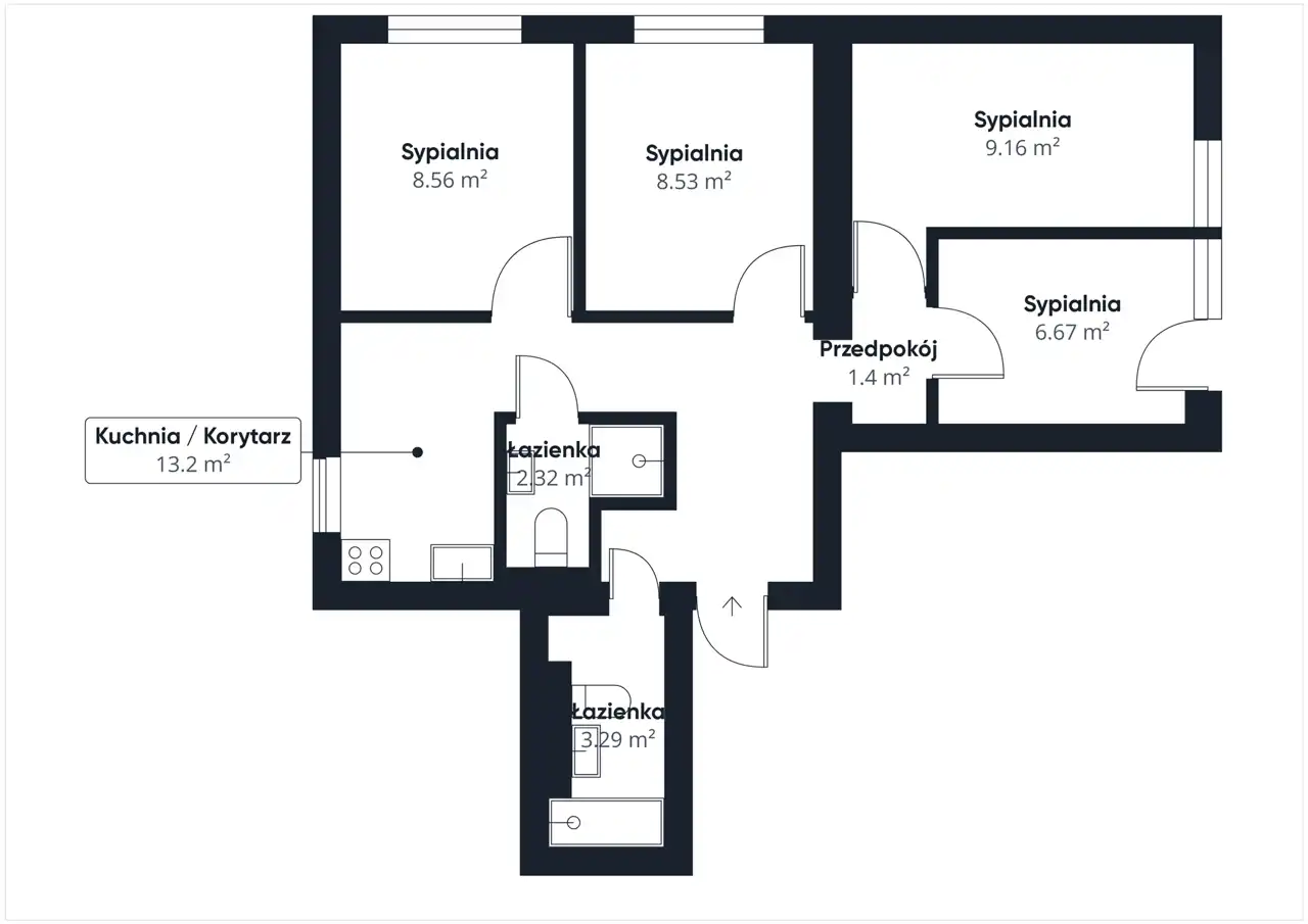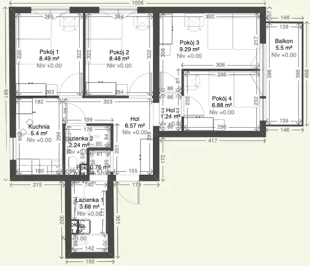 - Charakterystyka mieszkania 55.7 m2, 4 pokoje