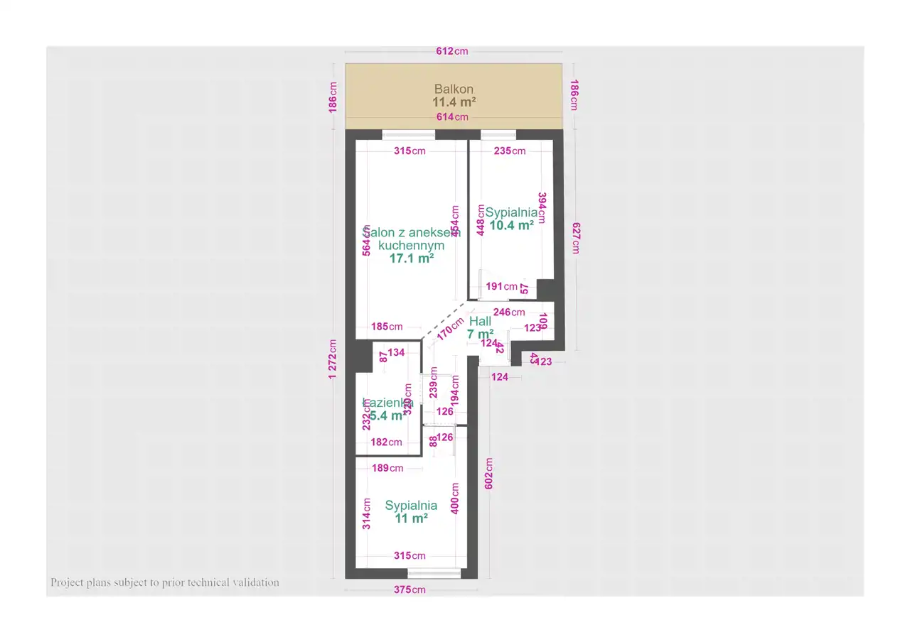 - Funkcjonalny układ mieszkania dający dużą swobodę aranżacji,