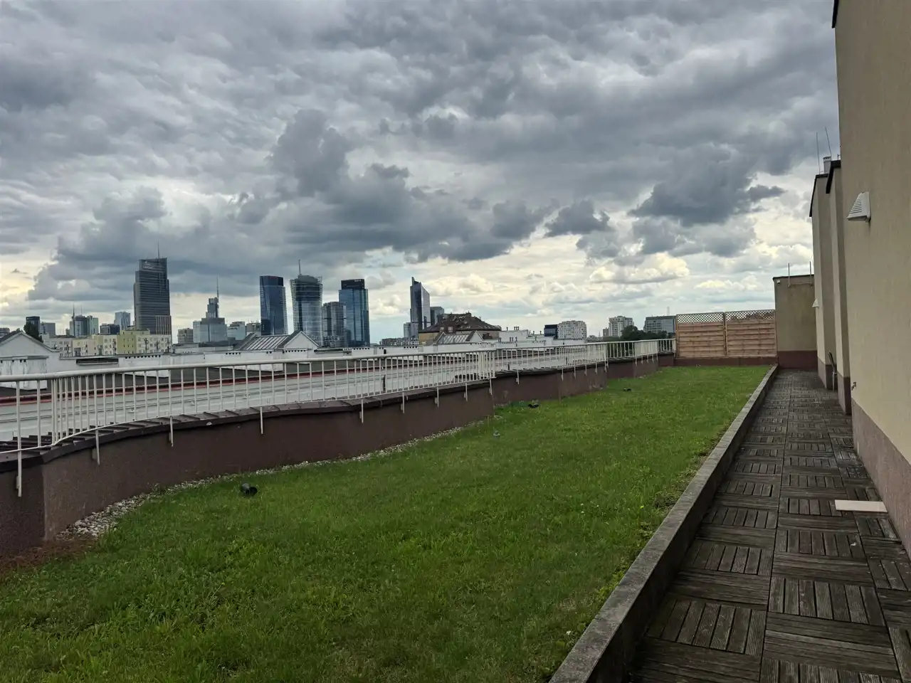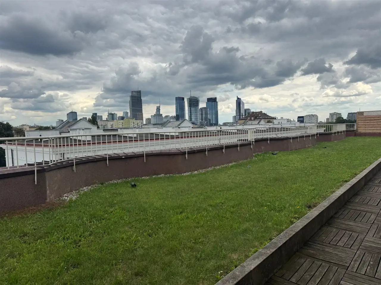Wysokość pomieszczeń 2,7 m. Dodatkowym atutem jest duży taras na dachu budynku ( do użytku dla mieszkańców) z bardzo ładnym widokiem na Warszawę.