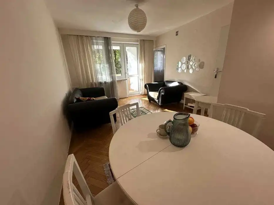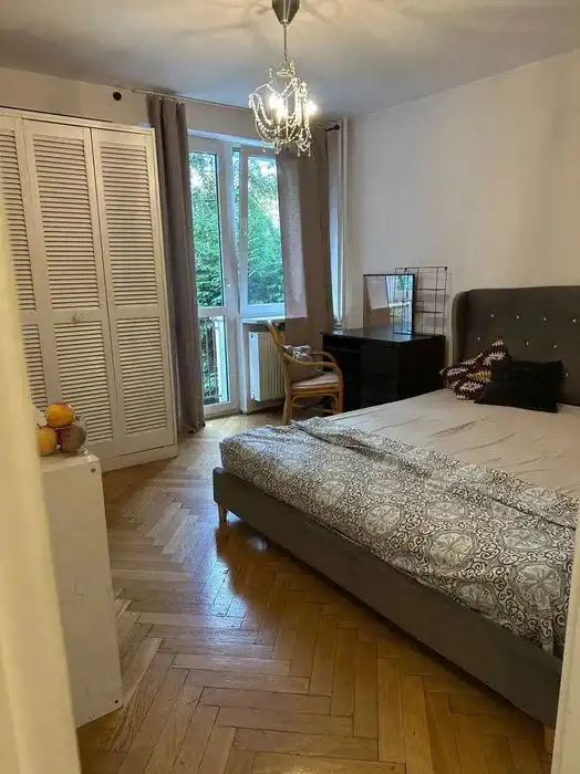 - Mieszkanie jest umeblowane, jasne, przestronne, z drzewami od strony salonu.