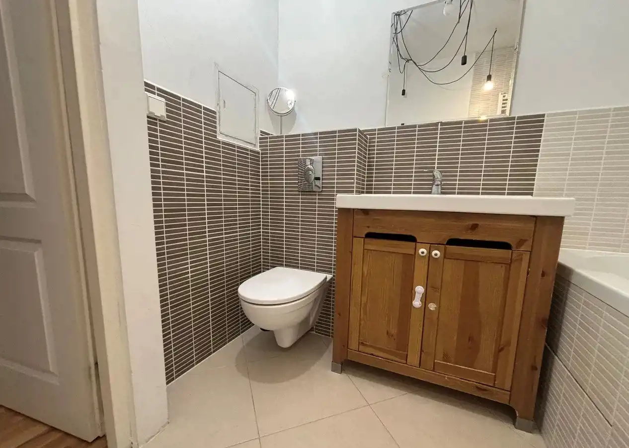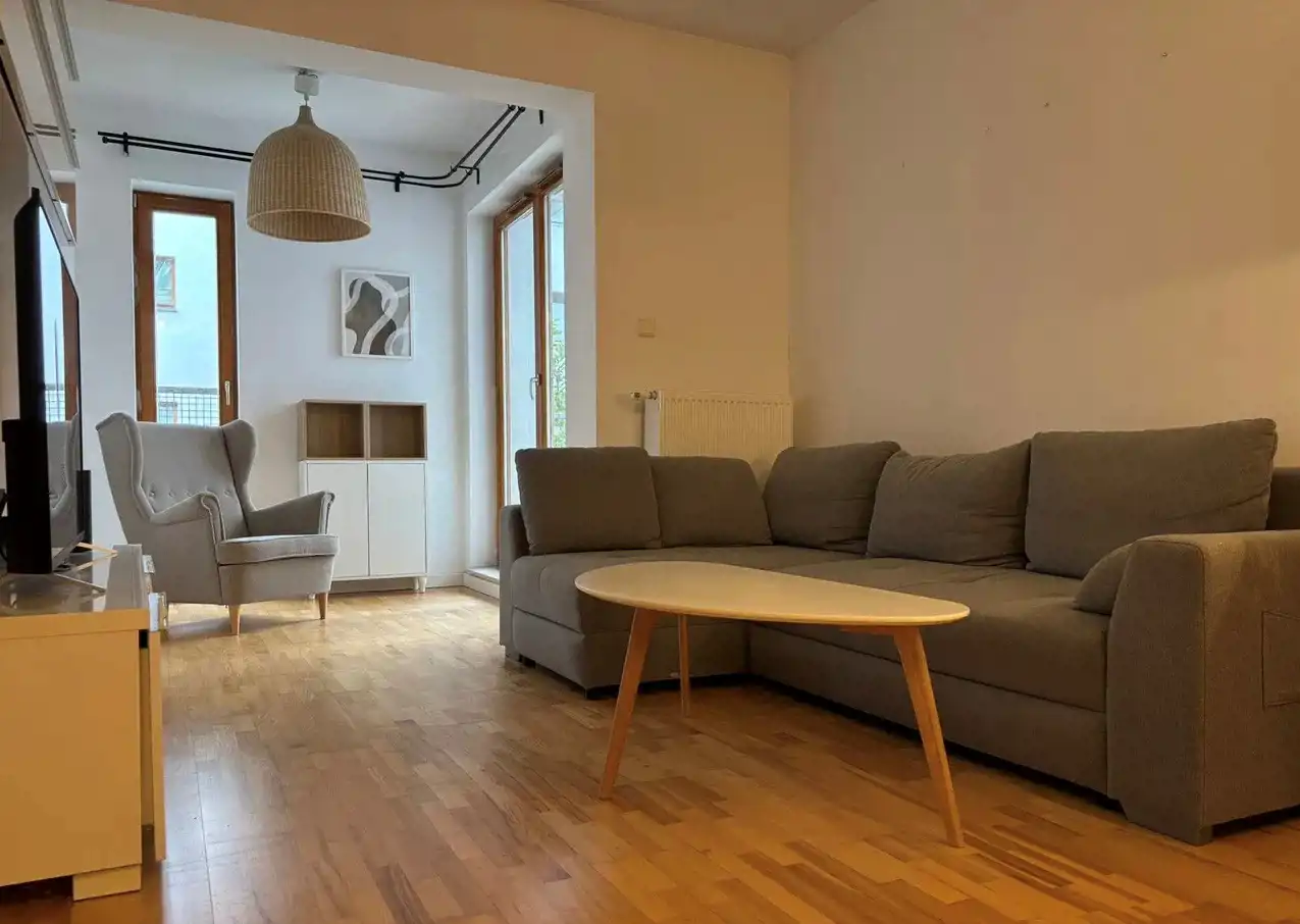 Mieszkanie składa się z przestronnego salonu 24m2 połączonego z wysokiej jakości aneksem kuchennym oraz balkonem , sypialni z dużą, pojemną szafą, łazienki wyposażonej w wannę oraz przedpokoju z szafą wnękową.