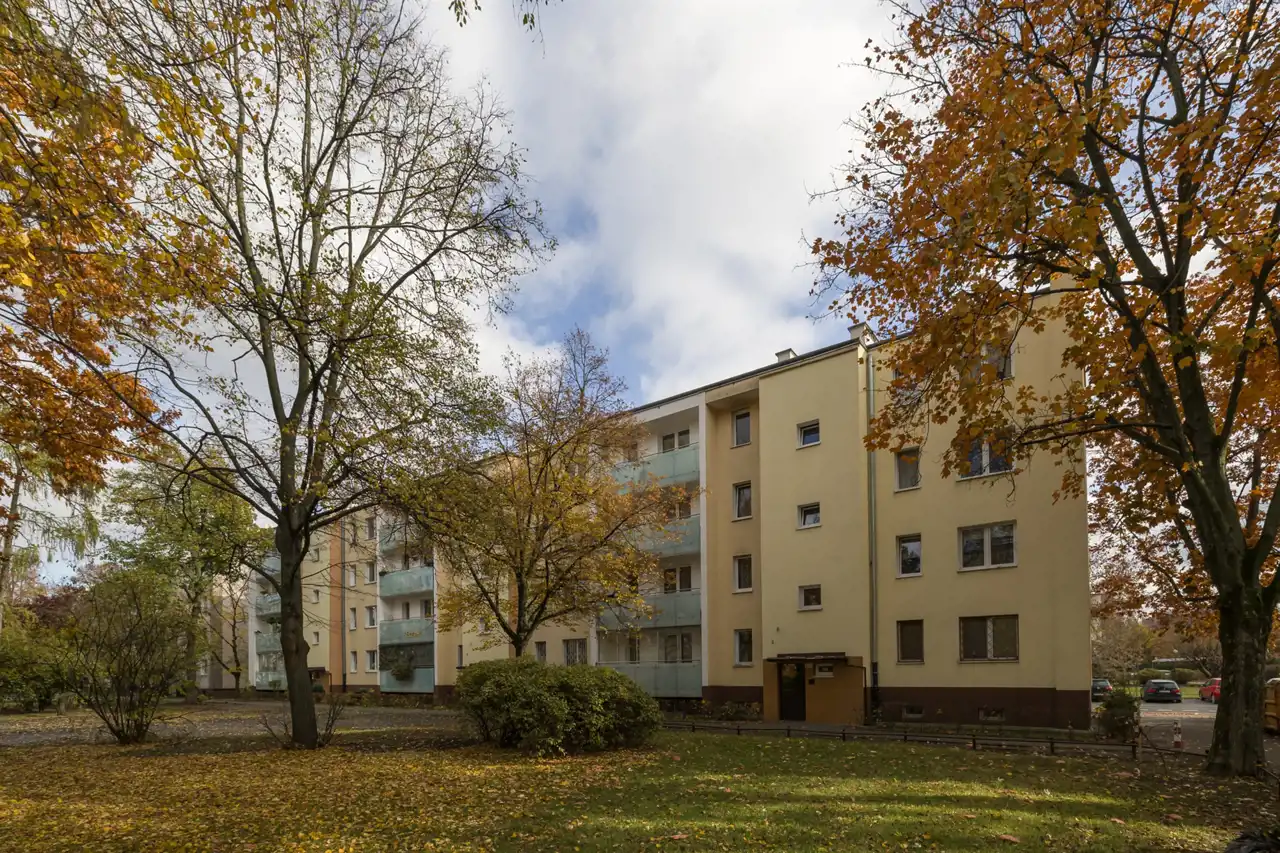 Lokal znajduje się w kameralnym budynku z lat 60., wzniesionym w solidnej technologii ramy H, po renowacji elewacji i klatki schodowej. Osiedle zaprojektowano z myślą o komforcie mieszkańców – z dużymi odległościami między budynkami i licznymi terenami zielonymi, co zapewnia prywatność i ciszę.