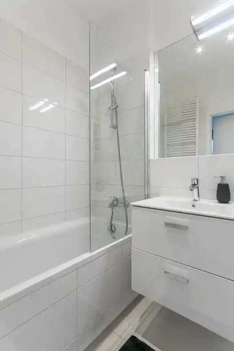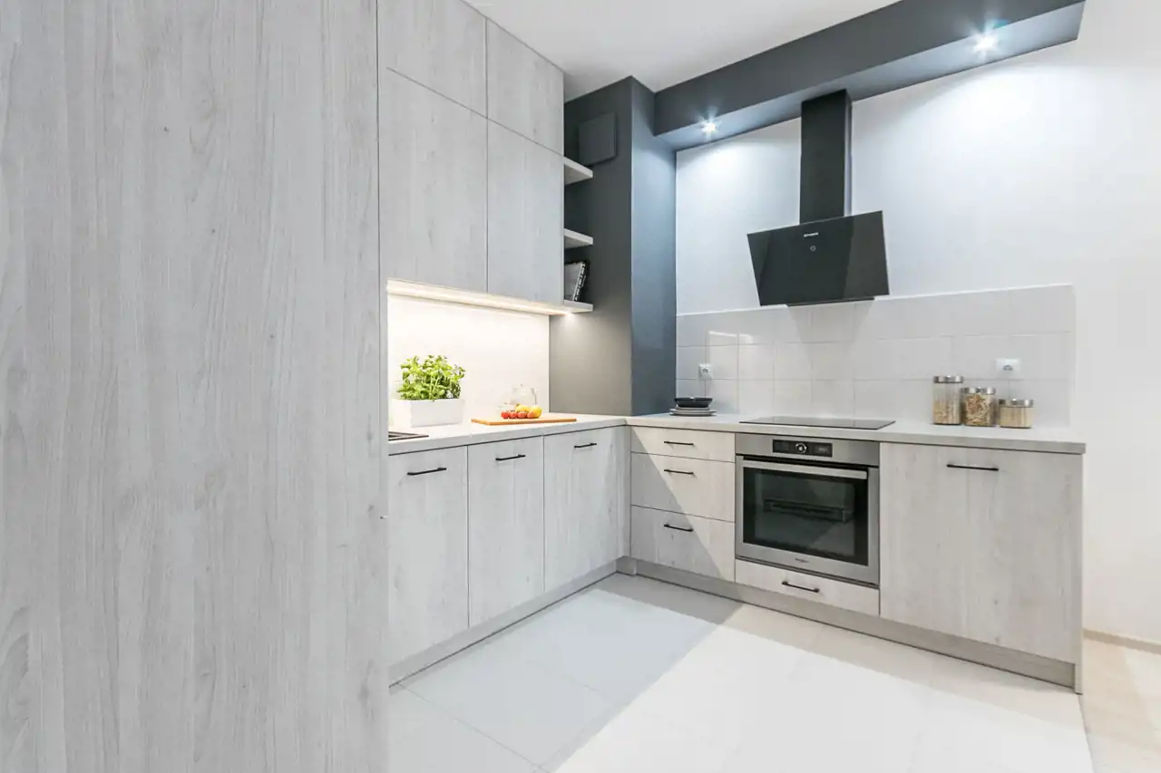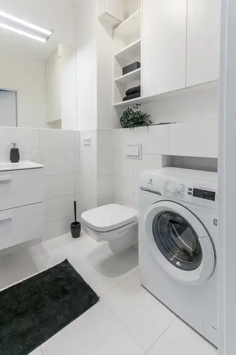 Najemca ma do dyspozycji ładnie wykonaną kuchnię ze sprzętem AGD w zabudowie, gustownie wykończoną łazienkę, a w przedpokoju praktyczną szafę we wnęce.