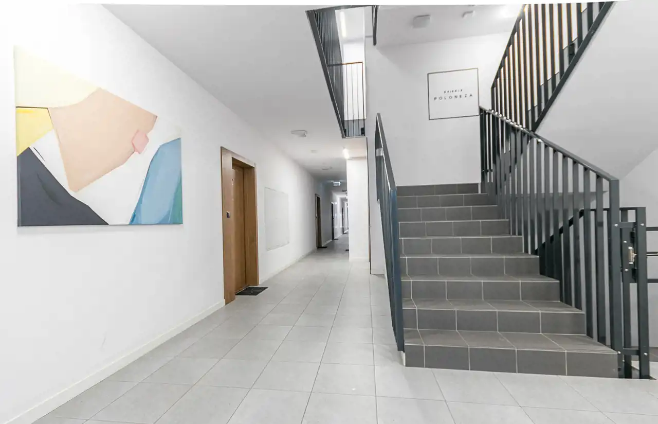 Lokalizacja - Osiedle Poloneza zostało wybudowane w latach 2017-2021 i składa się z kilku niskich budynków z wewnętrznymi ogrodami (patio) i zadbanymi terenami wspólnymi wokół budynków. Otoczenie robi wrażenie - wszystkie budynki nowe, zadbane tereny wspólne. Sprzedawane mieszkanie zostało odebrane w 2021 roku, wykończone, umeblowane i od razu wynajęte.