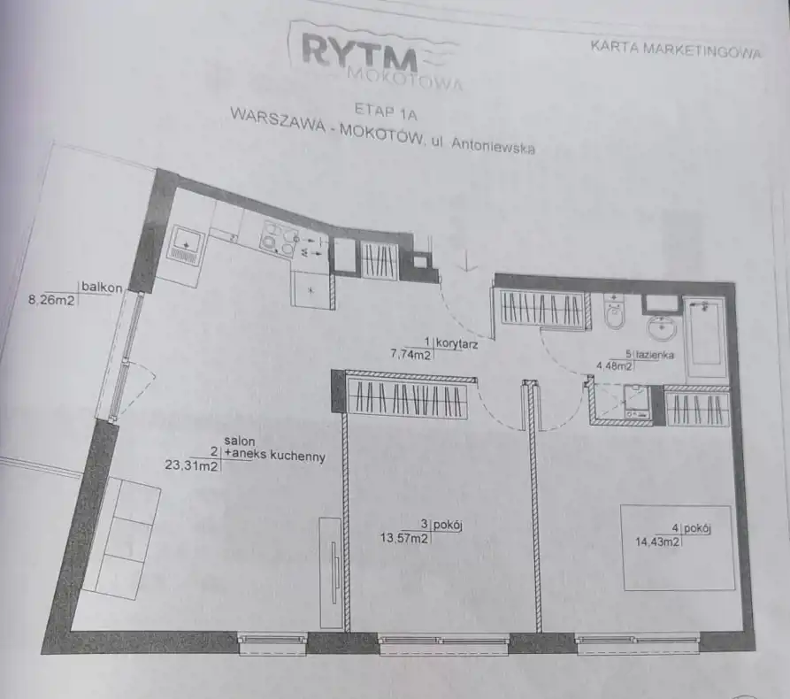 - Charakterystyka mieszkania 64.96 m2, 3 pokoje