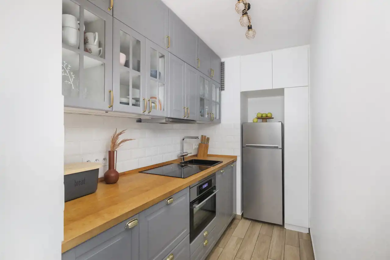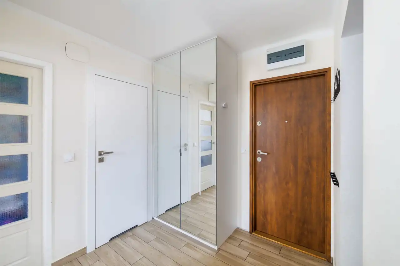 Położenie na wysokim piętrze i zieleń widoczna z okien sprawiają, że lokal – mimo ścisłego Centrum – pozostaje cichy i kameralny. Okna wychodzą na wschód, dzięki czemu wnętrza są jasne i przyjemnie doświetlone. Mieszkanie ma funkcjonalny układ i składa się z salonu, dwóch sypialni, oddzielnej kuchni, łazienki z prysznicem oraz przestronnego przedpokoju. Kuchnia i łazienka przeszły generalny remont w 2021 roku, dzięki czemu mieszkanie jest gotowe do zamieszkania lub wynajmu bez dodatkowych nakładów finansowych.