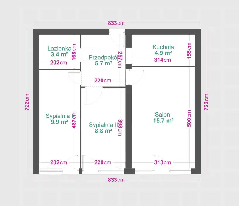 - Charakterystyka mieszkania 47.8 m2, 3 pokoje