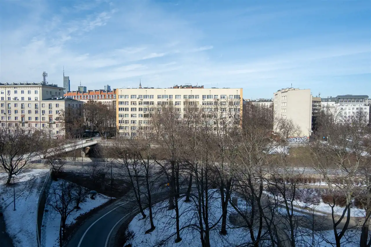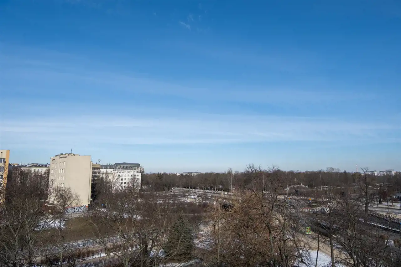 Salon i kuchnia mają okna skierowane na Plac na Rozdrożu.