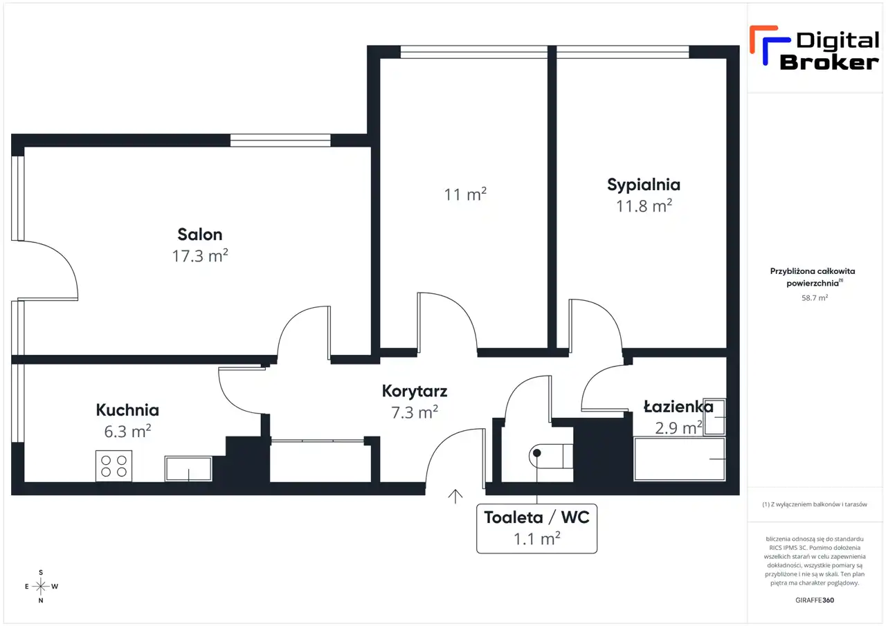 - Charakterystyka mieszkania 58 m2, 3 pokoje