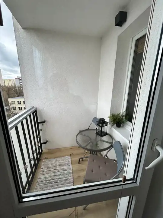 Przy salonie balkon z widokiem na zieleń, jest nieduży ale mieści się stół i 2 krzesełka - aby po pracy odsapnąć "na powietrzu". Wystawa okien: pokoje północny zachód, salon z balkonem południowy wschód.