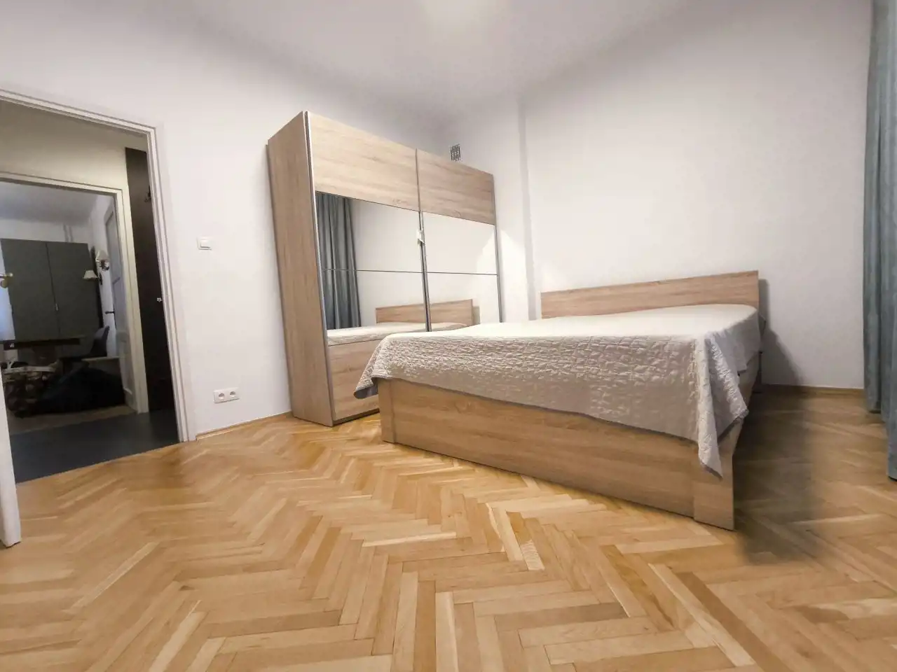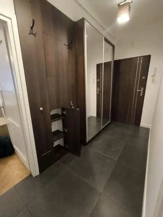 - przedpokój z dwoma szafami w zabudowie.