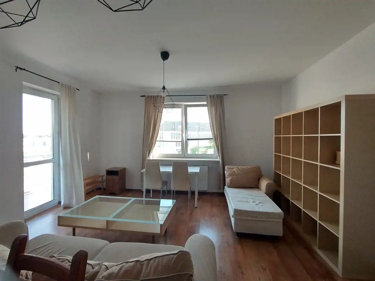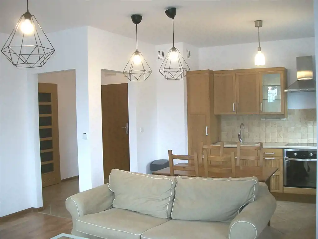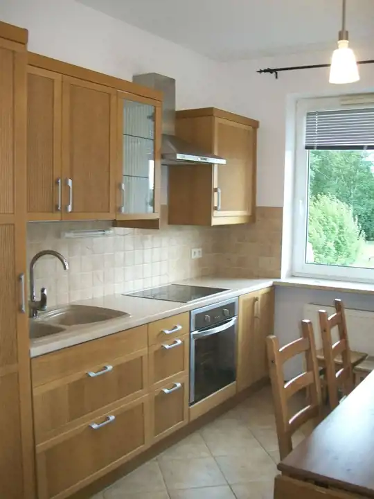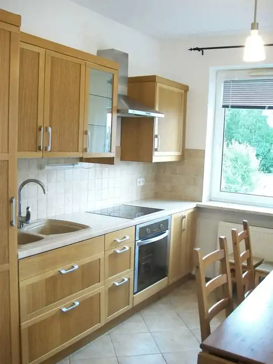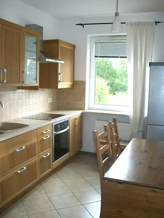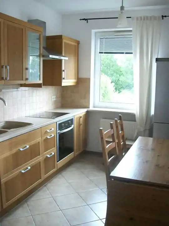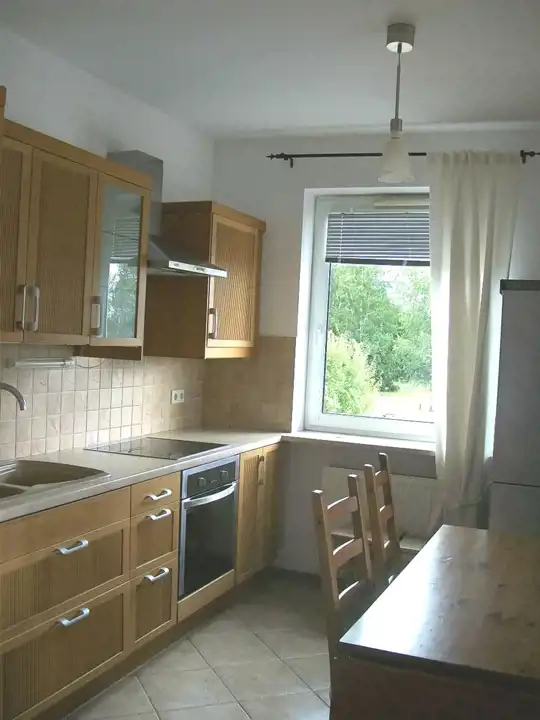 Widne, przestronne, dwupokojowe mieszkanie na zamkniętym, strzeżonym osiedlu. Lokal jest położony na 1 piętrze, w budynku 4 piętrowym z windą. Mieszkanie posiada balkon dostępny z pokoju dziennego. Mieszkanie nadaje się do zamieszkania, jest wyposażone i umeblowane. Kuchnia została otwarta na pokój dzienny, ale ma okno i można przywrócić stan pierwotny. W łazience długa, bardzo wygodna wanna. Razem z mieszkaniem sprzedawane są miejsce parkingowe w podziemnej hali garażowej oraz komórka lokatorska położona obok miejsca postojowego za łączną cenę ok. 93000zł. Okna mieszkania wychodzą w kierunku Lasu Kabackiego (są na wschód i na południe). Miesięczne należności wobec administracji wynoszą aktualnie ok 800zł.