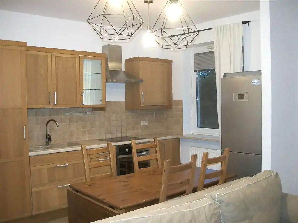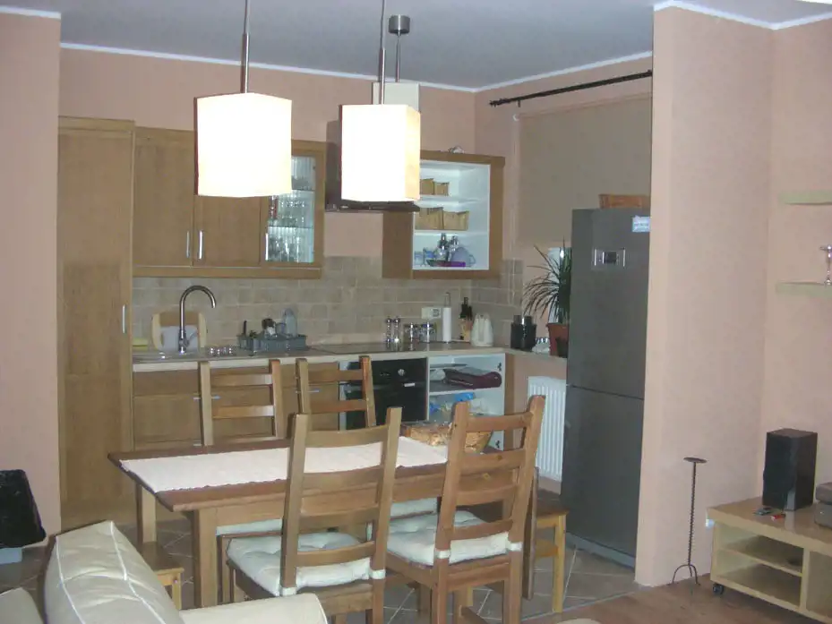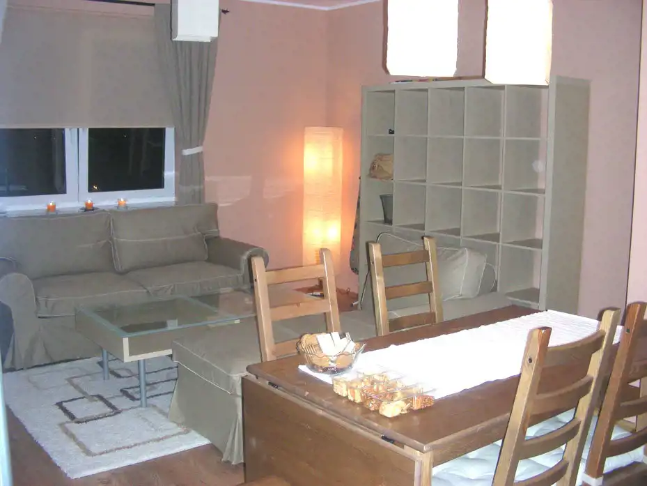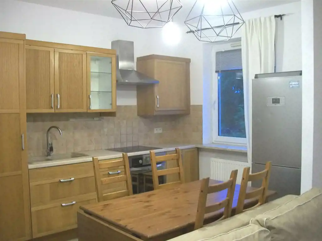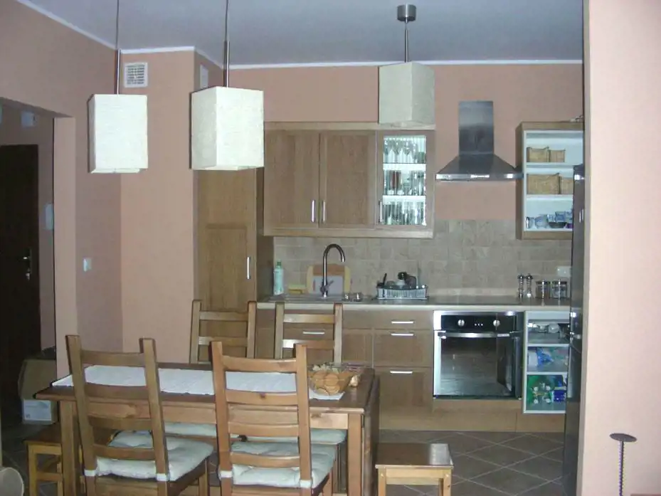 Widne, przestronne, dwupokojowe mieszkanie na zamkniętym, strzeżonym osiedlu. Lokal jest położony na 1 piętrze, w budynku 4 piętrowym z windą. Mieszkanie posiada balkon dostępny z pokoju dziennego. Mieszkanie nadaje się do zamieszkania, jest wyposażone i umeblowane. Kuchnia została otwarta na pokój dzienny, ale ma okno i można przywrócić stan pierwotny. W łazience długa, bardzo wygodna wanna. Razem z mieszkaniem sprzedawane są miejsce parkingowe w podziemnej hali garażowej oraz komórka lokatorska położona obok miejsca postojowego za łączną cenę ok. 93000zł. Okna mieszkania wychodzą w kierunku Lasu Kabackiego (są na wschód i na południe). Miesięczne należności wobec administracji wynoszą aktualnie ok 800zł.