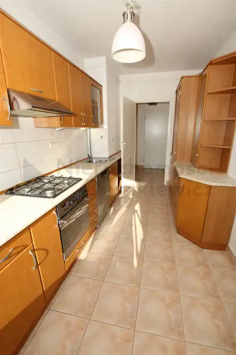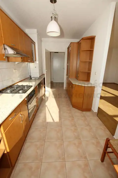 Kuchnia 10m (okna od zachodu) - glazura, terakota, meble pod wymiar z AGD: lodówko-zamrażarka, zmywarka, kuchnia gazowo-elektryczna, okap, stół + 3 taborety. Do kuchni wejście z przedpokoju, dodatkowe przejście z kuchni do salonu (wnęka wielkości drzwi).