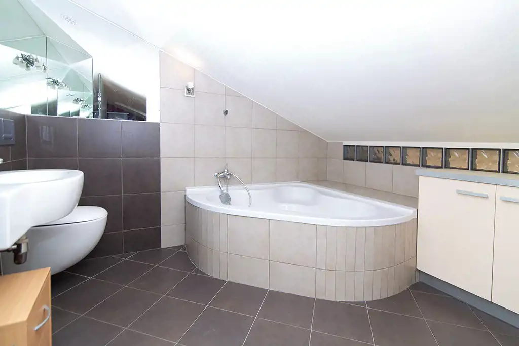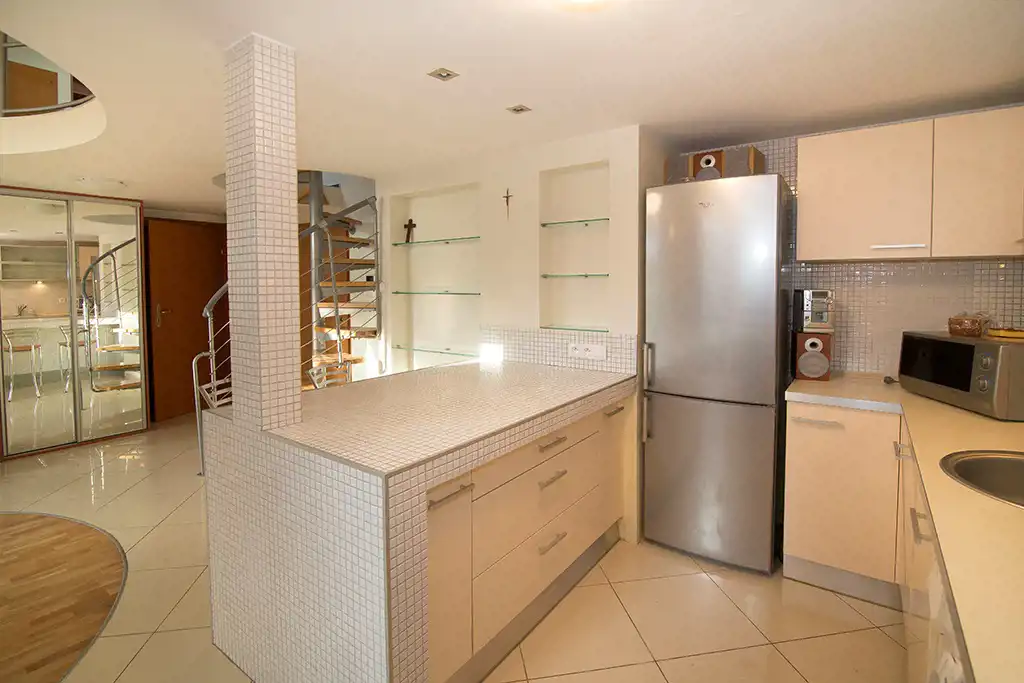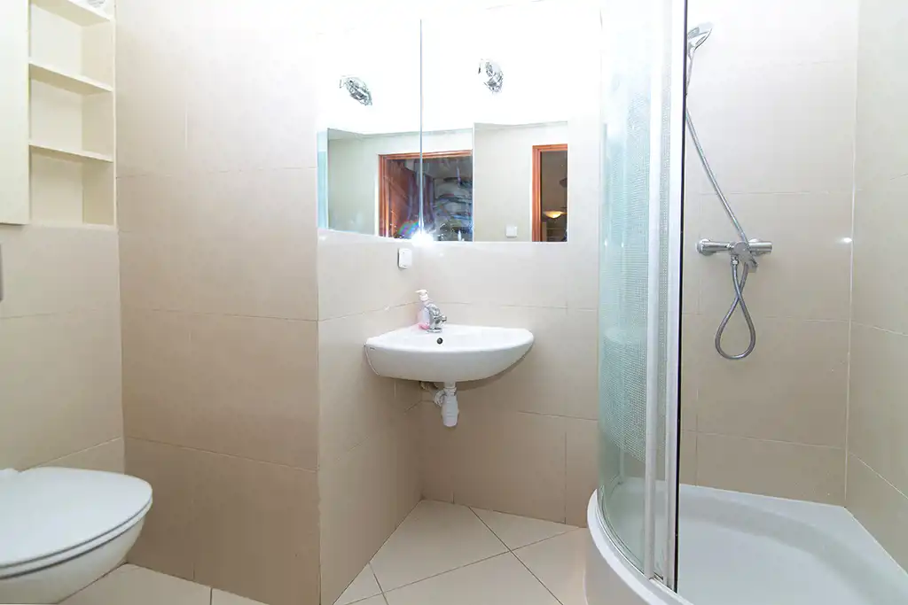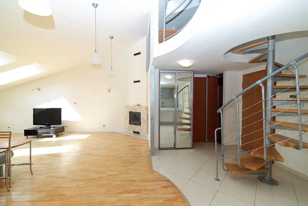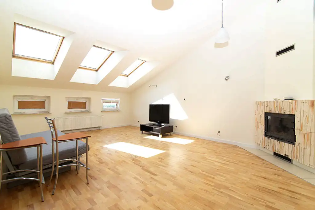 Wyobraź sobie, że jesteś już w środku. Mieszkanie ma 2 poziomy jest ciepłe i przytulne. Ogromne, połaciowe okna zalewają wnętrze światłem.Na pierszym poziomie jest Salon z kominkiem i klimatyzacją otwarty na kuchnię w pełni wyposażoną (aneks kuchenny) .Znajduje się tu także Sypialnia z dużą zabudowaną szafą oraz łazienka. Drugi poziom składa się z sypialni dla gości i łazienki z wanną w glazurze i terakocie wysokiego gatunku .Wszysko gustownie wykończone zaprasza do natychmiastowego zamieszkania