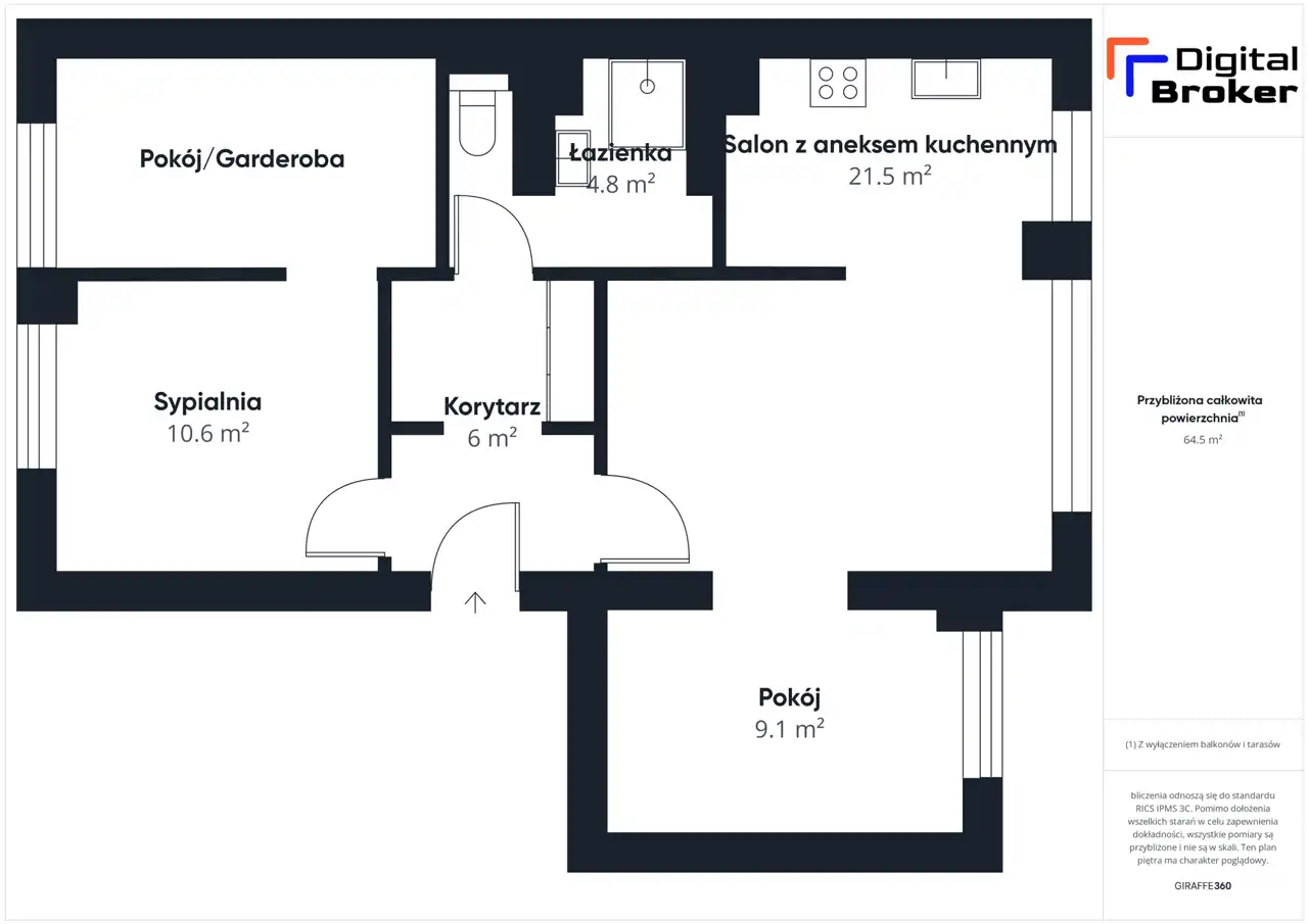 - Charakterystyka mieszkania 64.5 m2, 4 pokoje