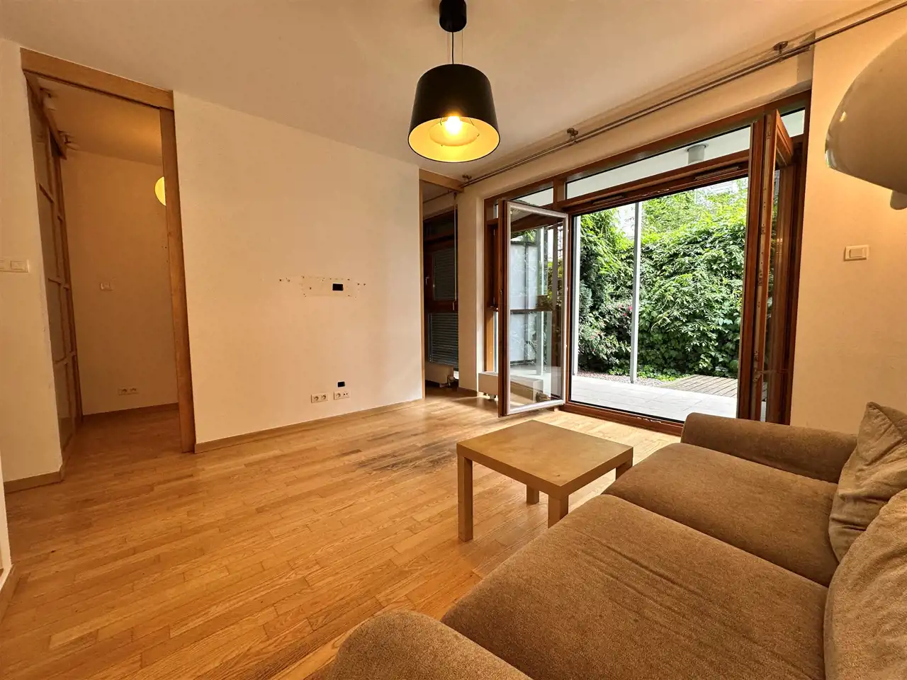 Pokój dzienny z aneksem kuchennym i wyjściem do ogródka z tarasem, ustawna sypialnia z szafą w zabudowie, duża łazienka z prysznicem oraz przedpokój z szafą.
