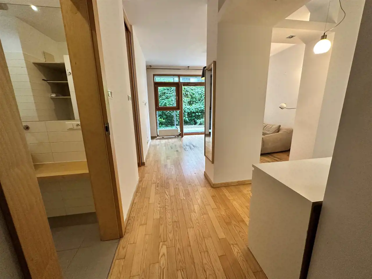 Dwupokojowe mieszkanie z ogródkiem, w apartamentowcu z recepcją bezpośrednio przy metrze.