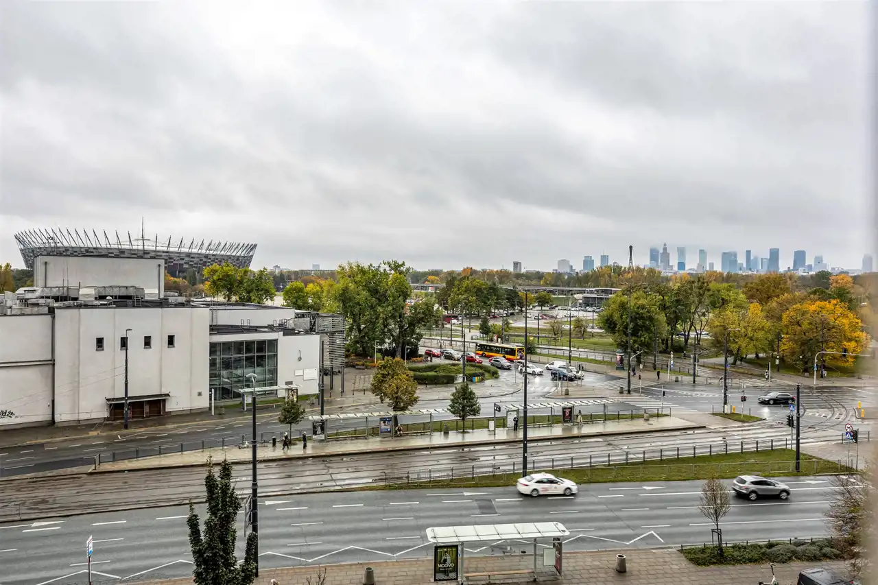 Perfekcyjna komunikacja. Metro Stadion Narodowy, kilka linii tramwajowych i autobusowych, PKP, SKM.