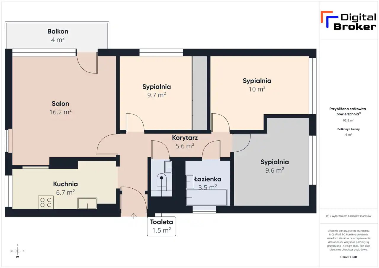 - Charakterystyka mieszkania 62.8 m2, 4 pokoje