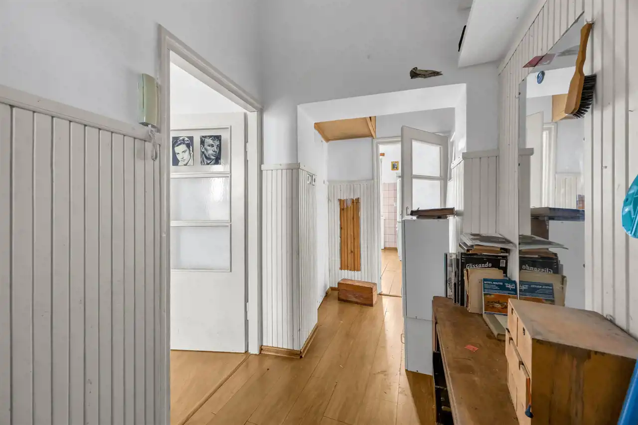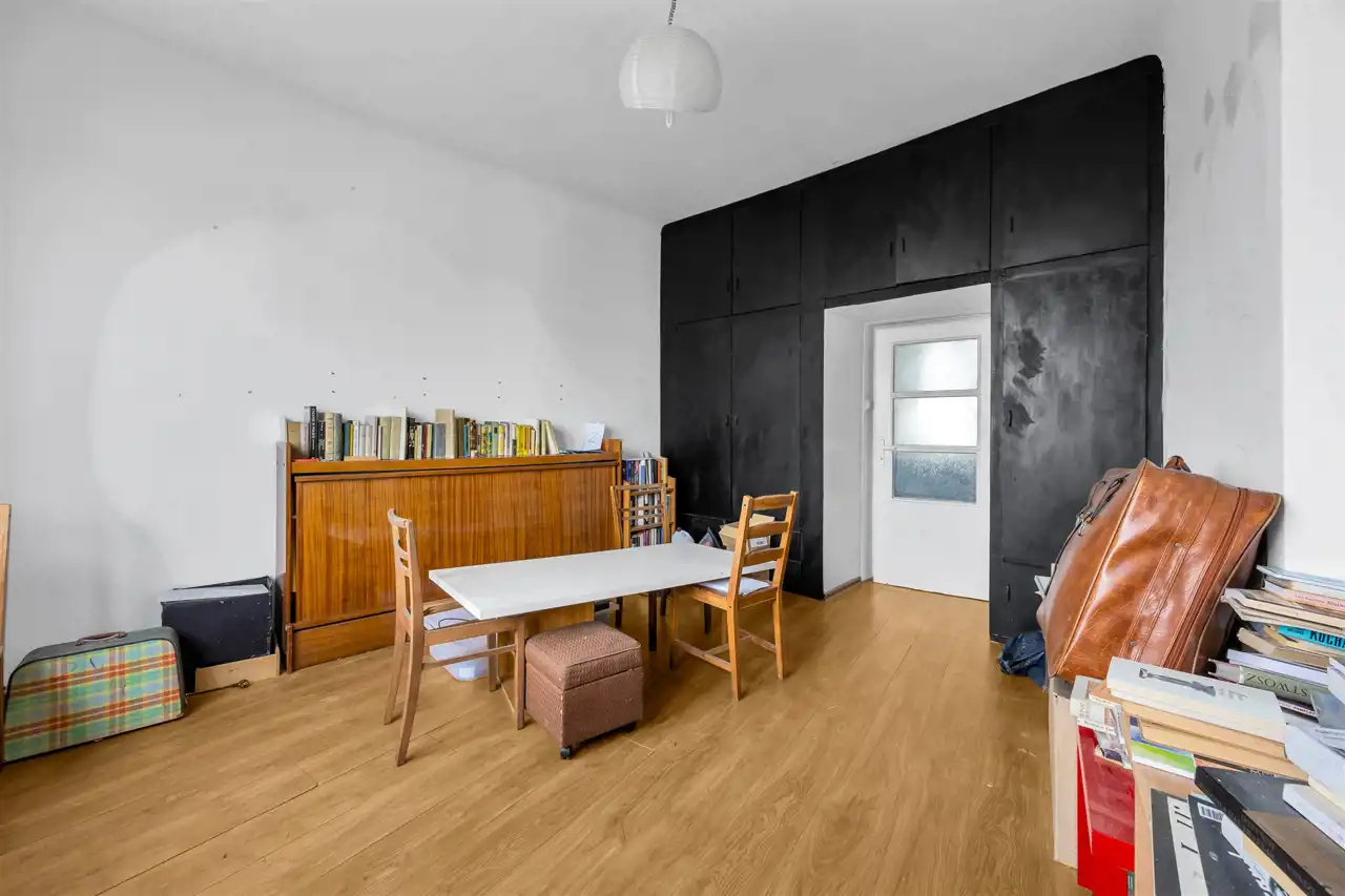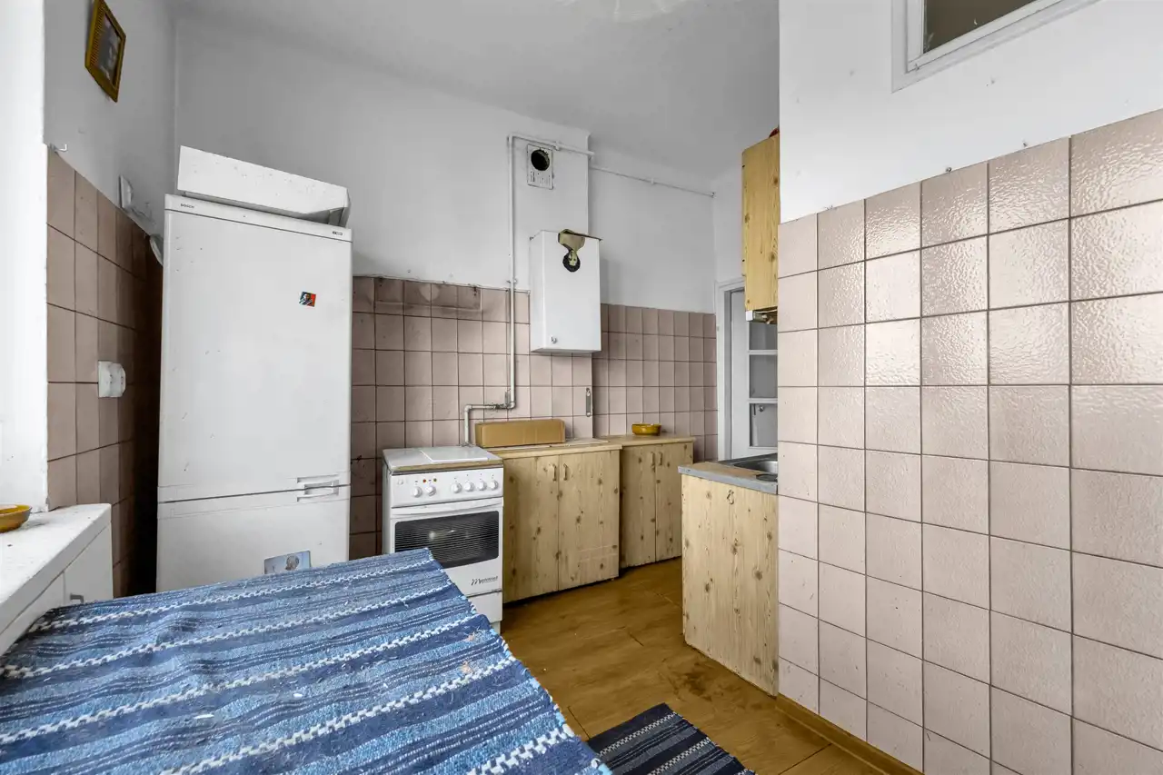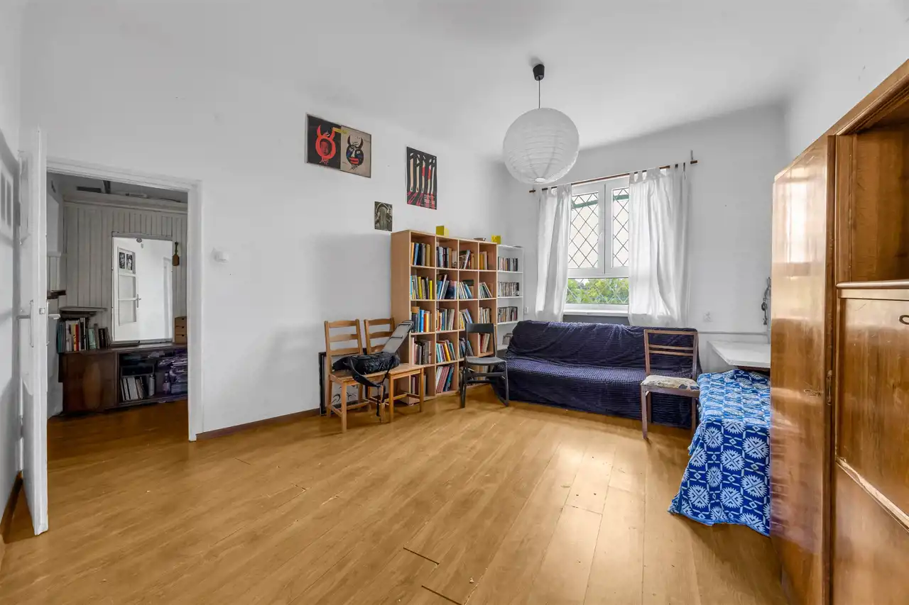 Mieszkanie wysokie, dwustronne w stanie do remontu, ewentualnego odświeżenia w zależności od potrzeb. Duży pokój, w stronę Placu Wilsona, duża kuchnia również na Plac Wilsona oraz sypialnia na galerię i zielone, zagospodarowane podwórko z bajecznym widokiem. Łazienka z kabiną prysznicową. Przedpokój z szafami.