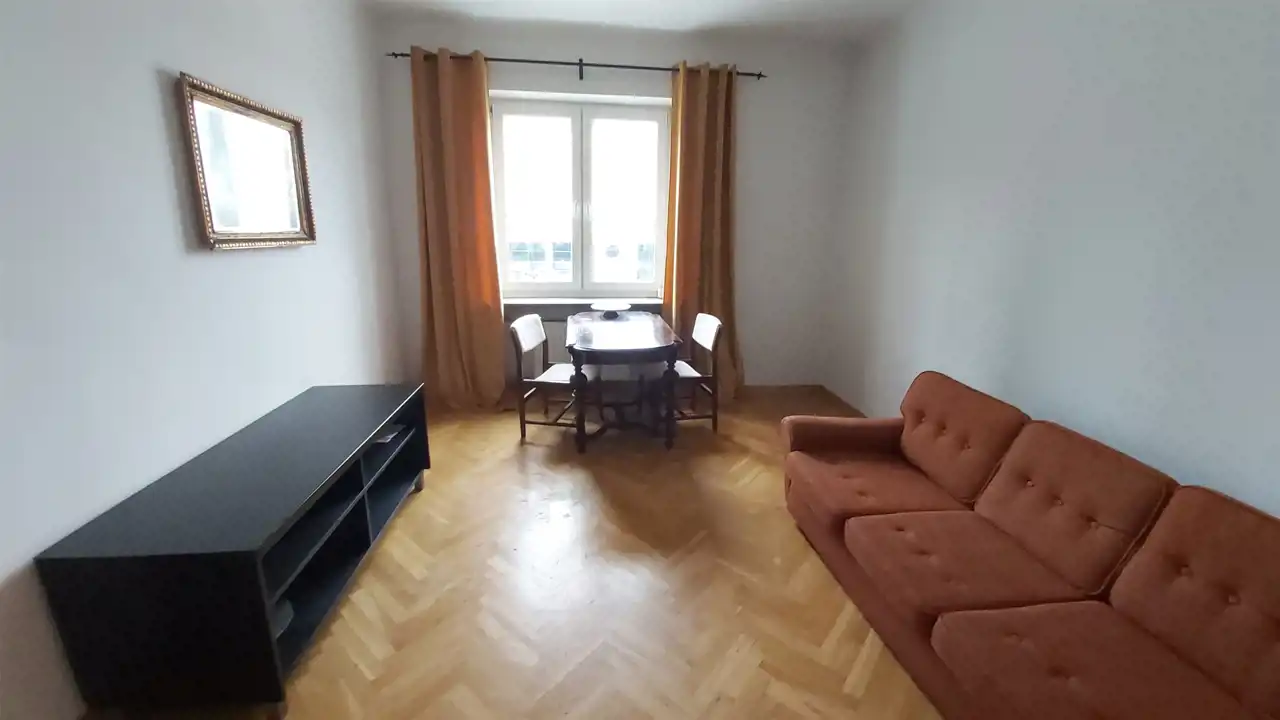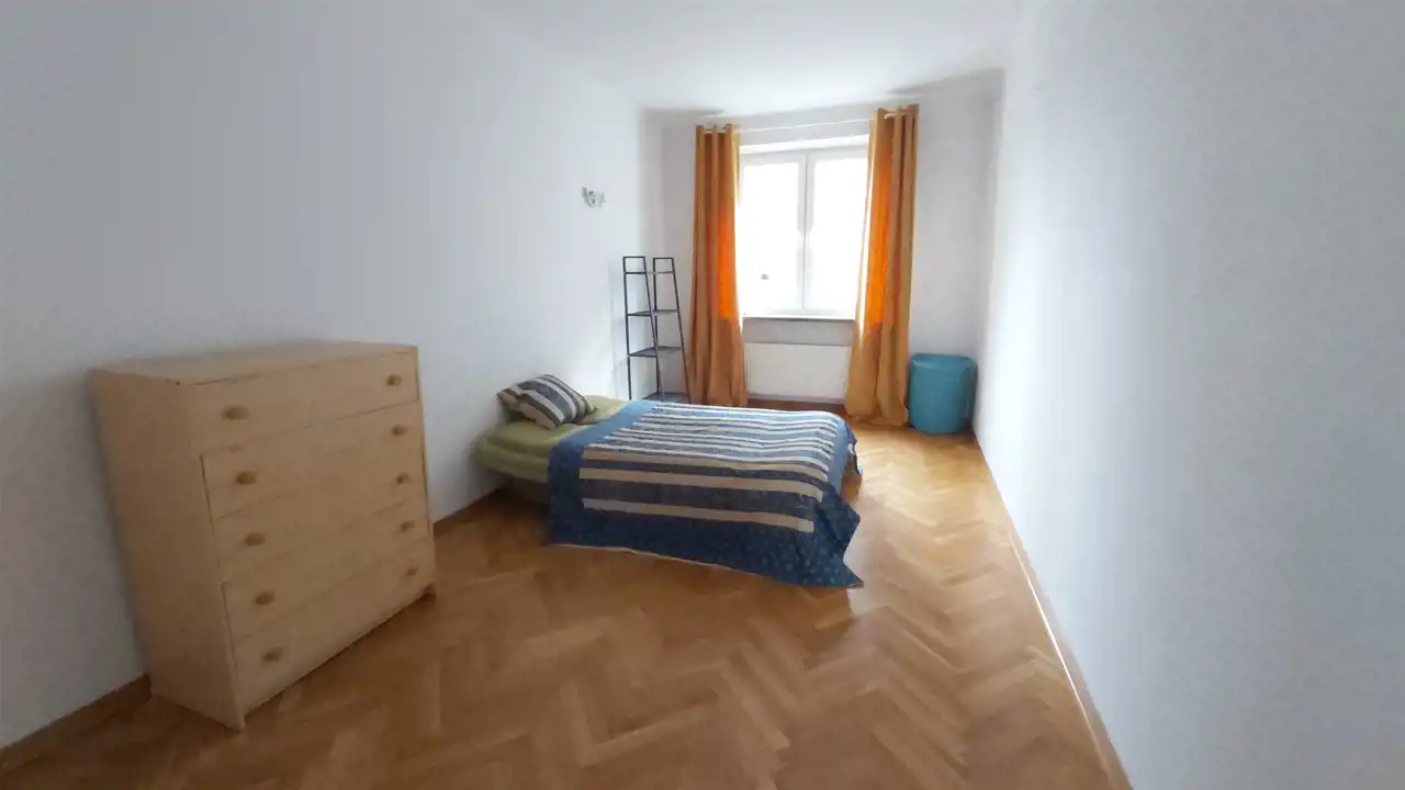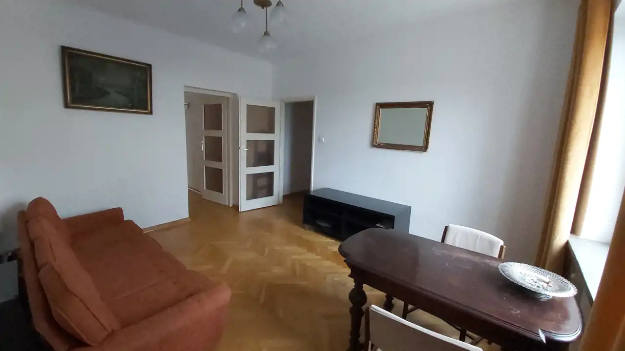 W mieszkaniu jest parkiet. Obecnie jest jedna sypialnia, salon, kuchnia z oknem, łazienka i przedpokój.