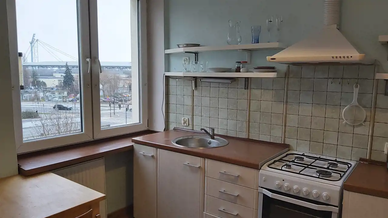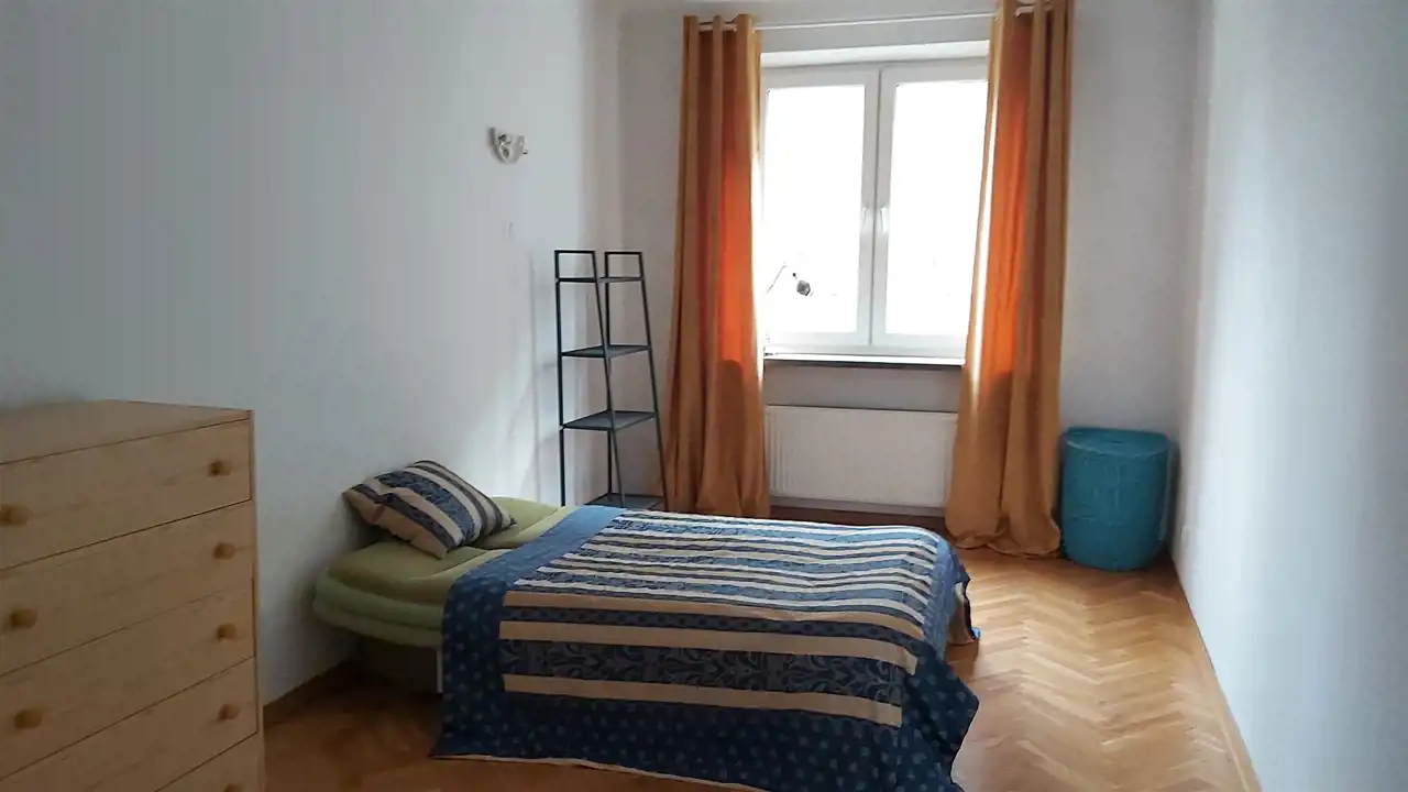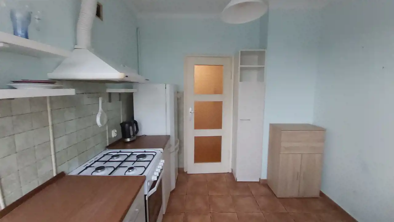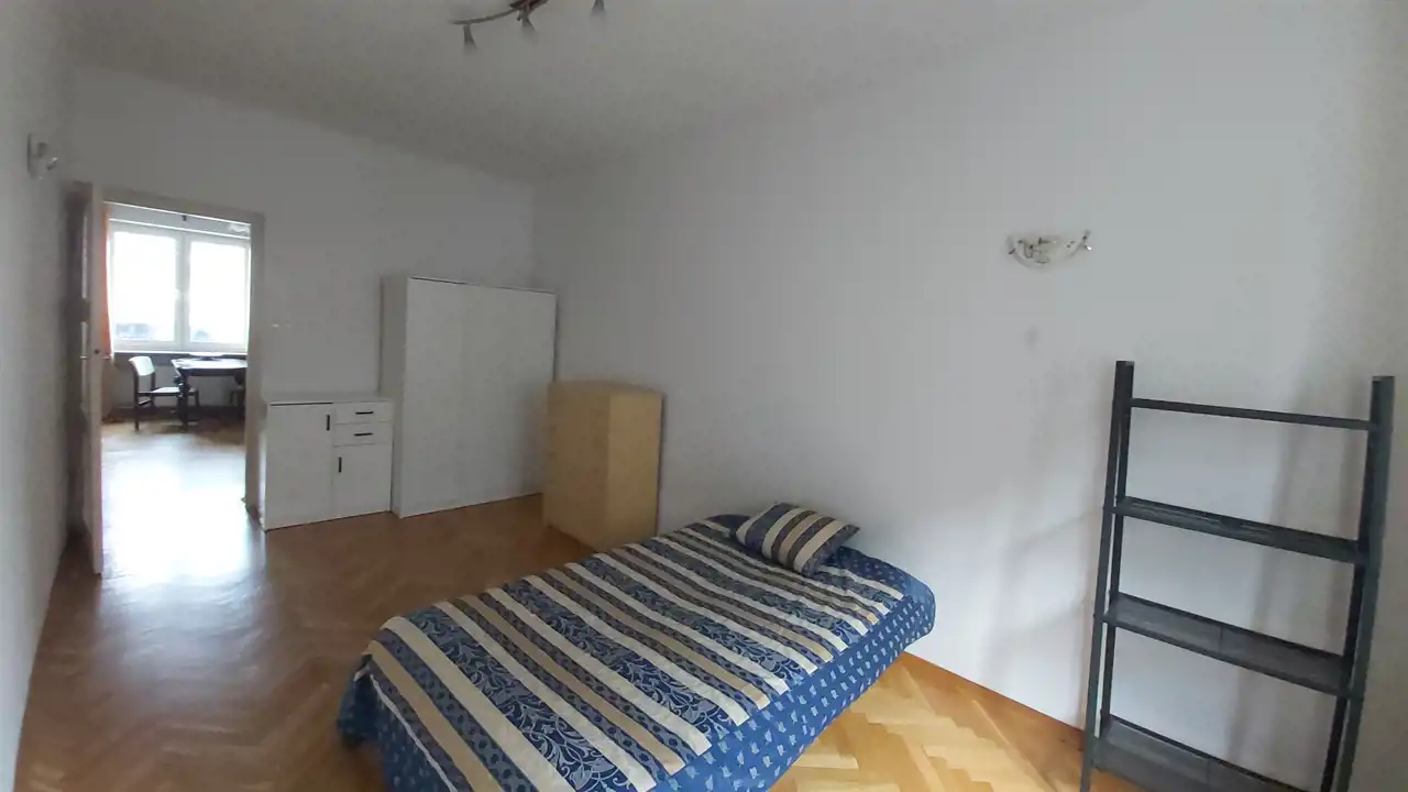 W mieszkaniu jest parkiet. Obecnie jest jedna sypialnia, salon, kuchnia z oknem, łazienka i przedpokój.