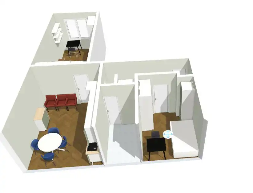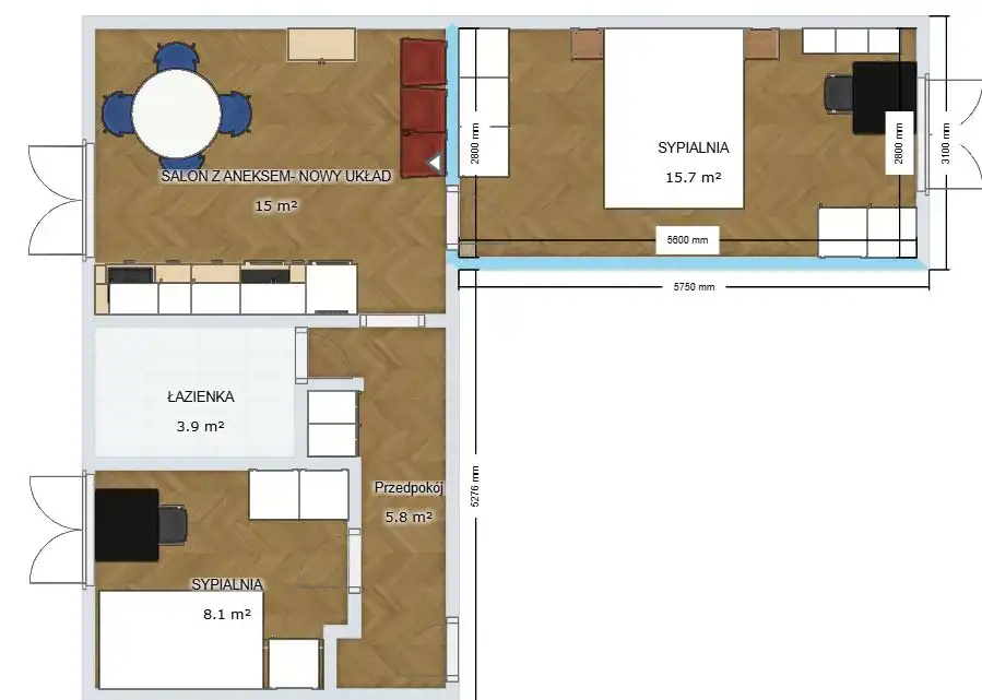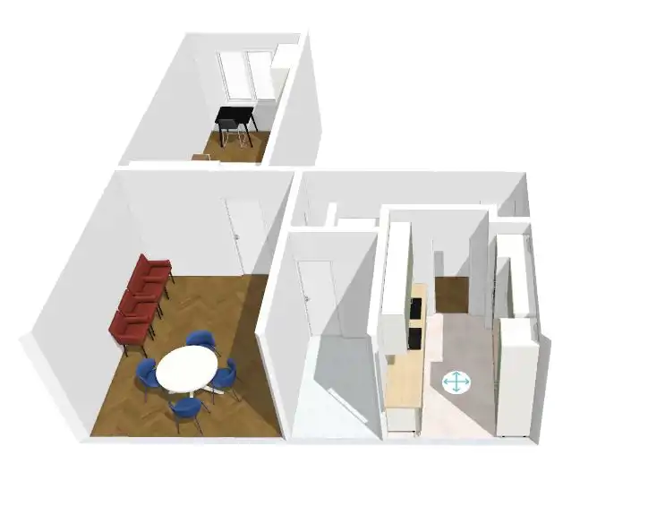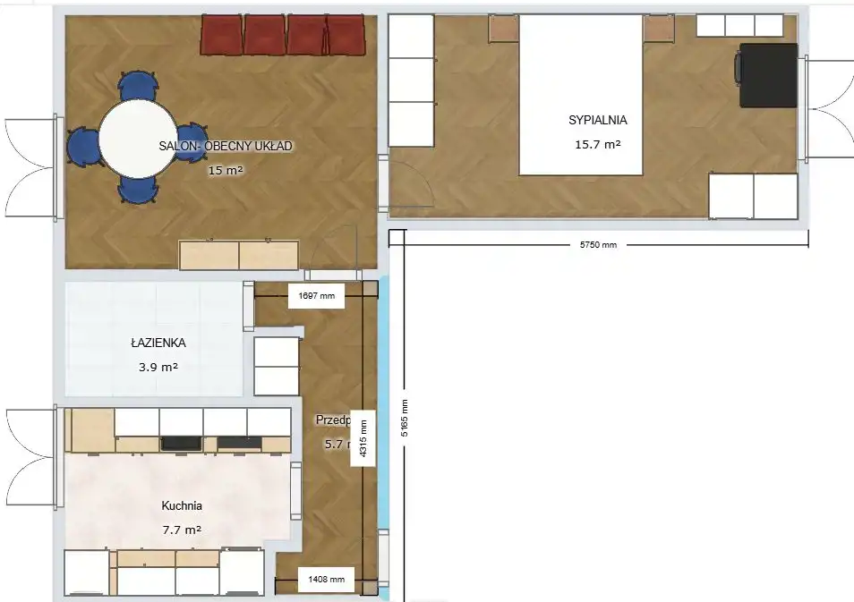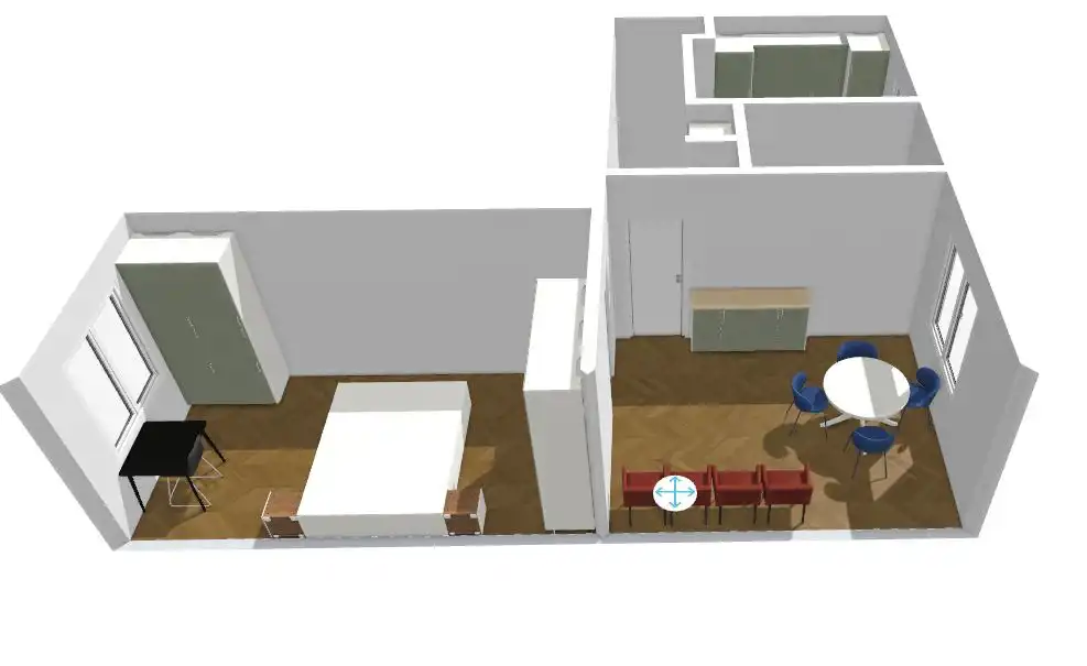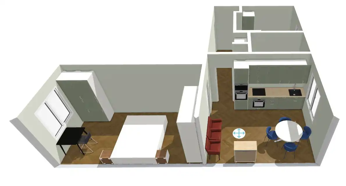 Po zaaranżowaniu aneksu kuchennego w salonie możemy mieć drugą sypialnię lub gabinet.