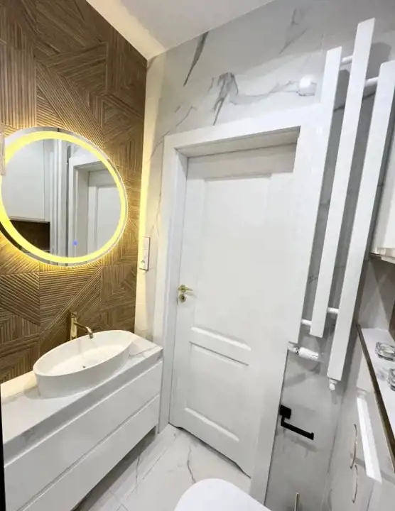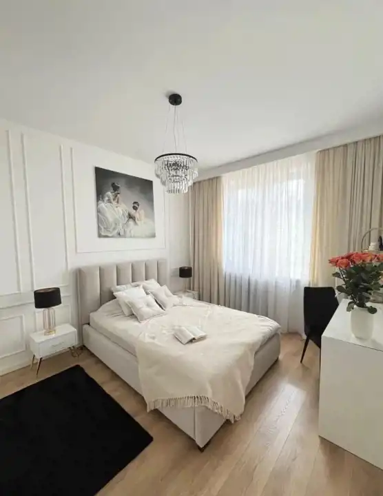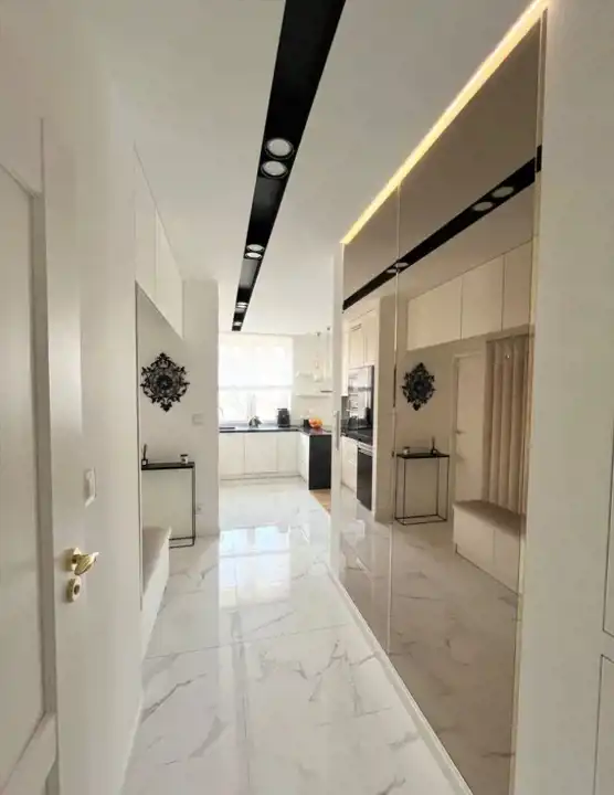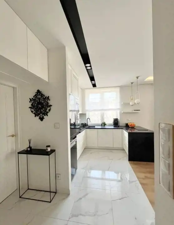 Mieszkanie jest w pełni wyposażone – wszystkie meble i sprzęty AGD pozostają, w tym kuchenka, lodówka, zmywarka, TV, ekspres do kawy i pralka. Sprzęty wysokiej klasy Electrolux, Bosch, Samsung.