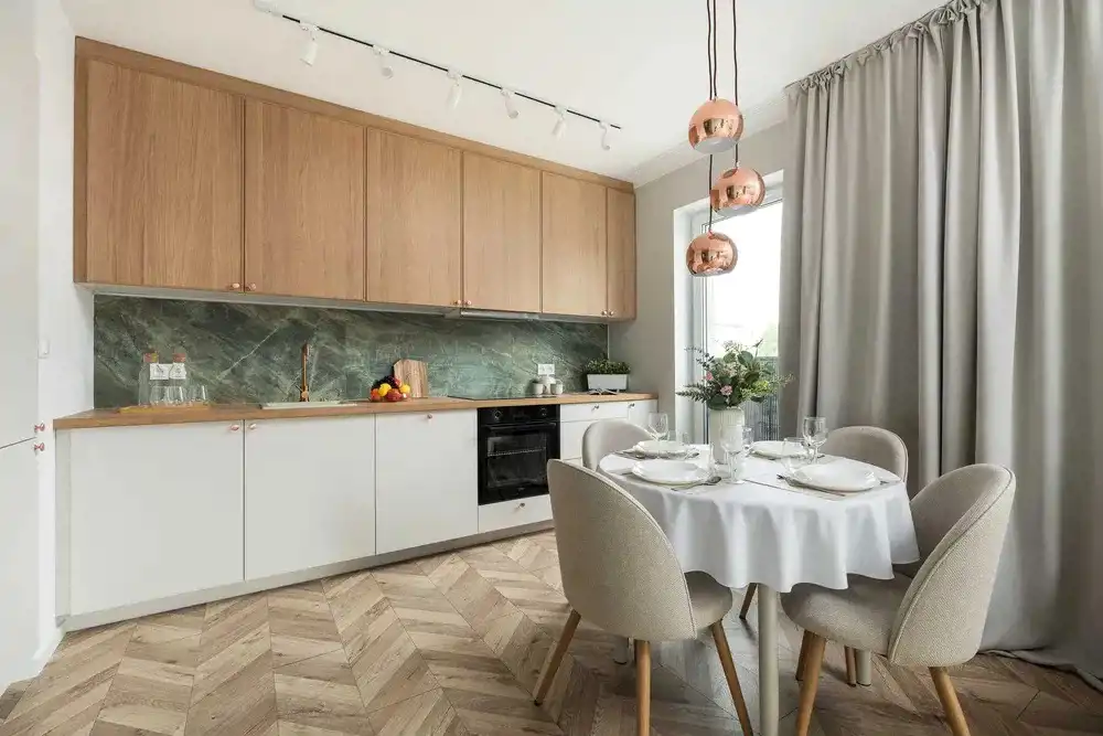 - Przemyślany układ: salon połączony z dużą kuchnią i dwie sypialnie.